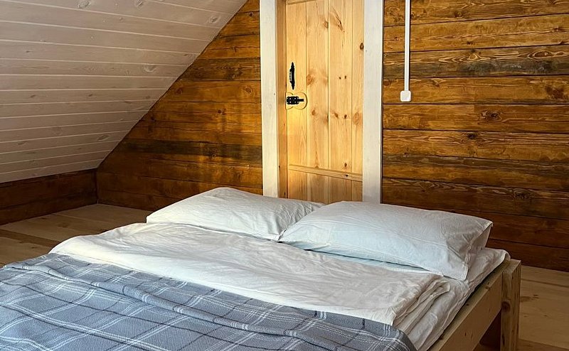 две 2-спальные кровати, диван раскладной, мини-кухня: Х, плита, раковина, ТВ, туалет на территории рядом с домом. Мангальная зона и беседка.