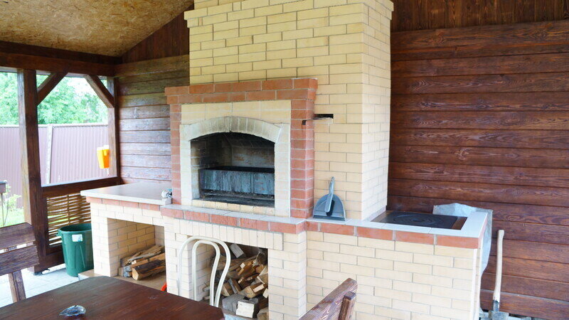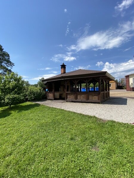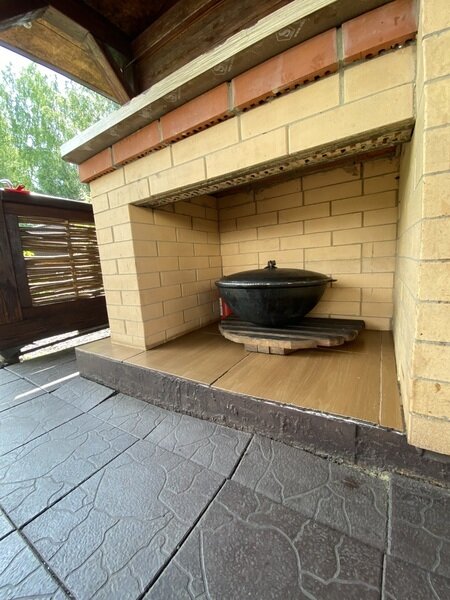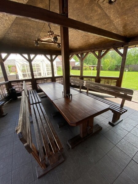 Беседка на 15 человек с печкой и мангалом для приготовления шашлыка и плова.