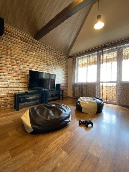 Большая мансарда с бильярдом, настольным теннисом, настольным футболом и игровой приставкой.