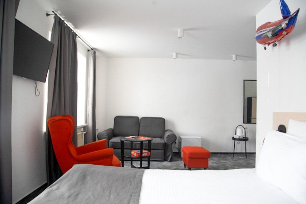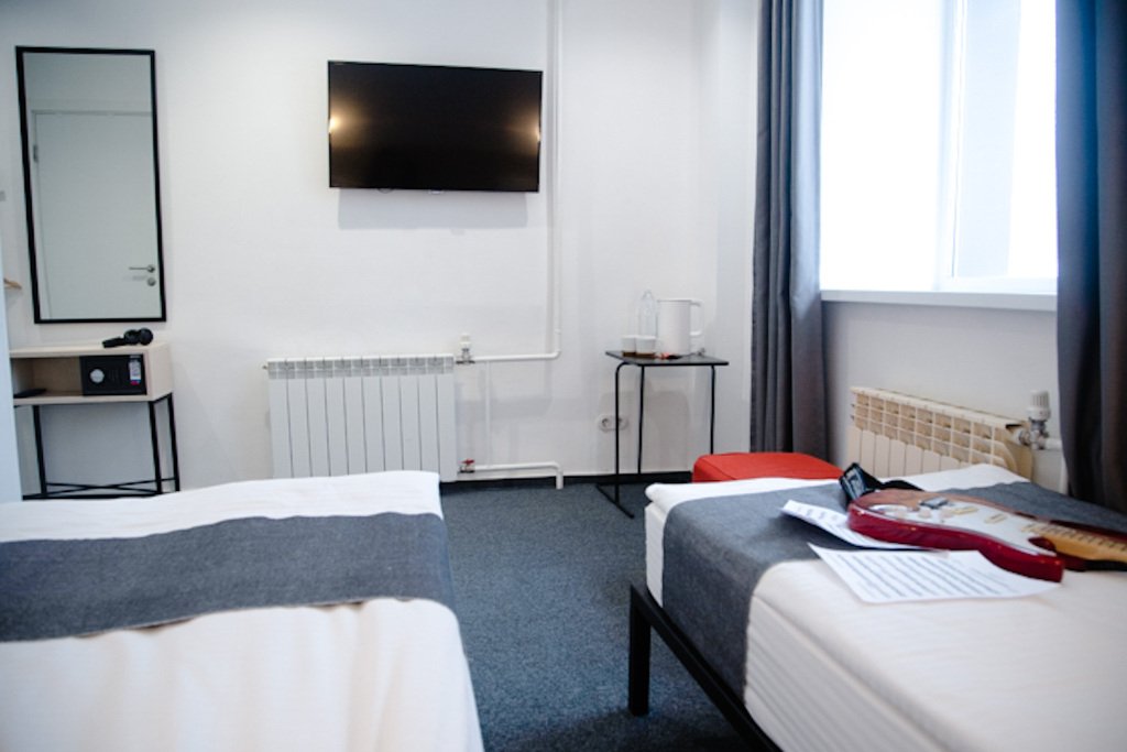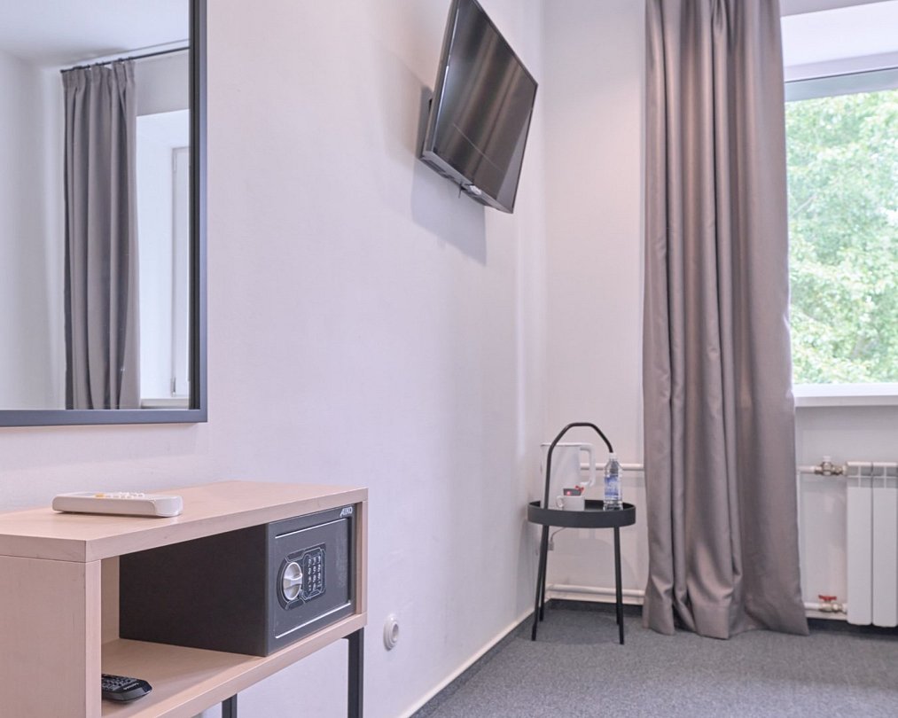 В каждом номере есть необходимое для комфортного проживания — кондиционер, телевизор с плоским экраном, сейф, фен, чайник, питьевая вода и косметические принадлежности.