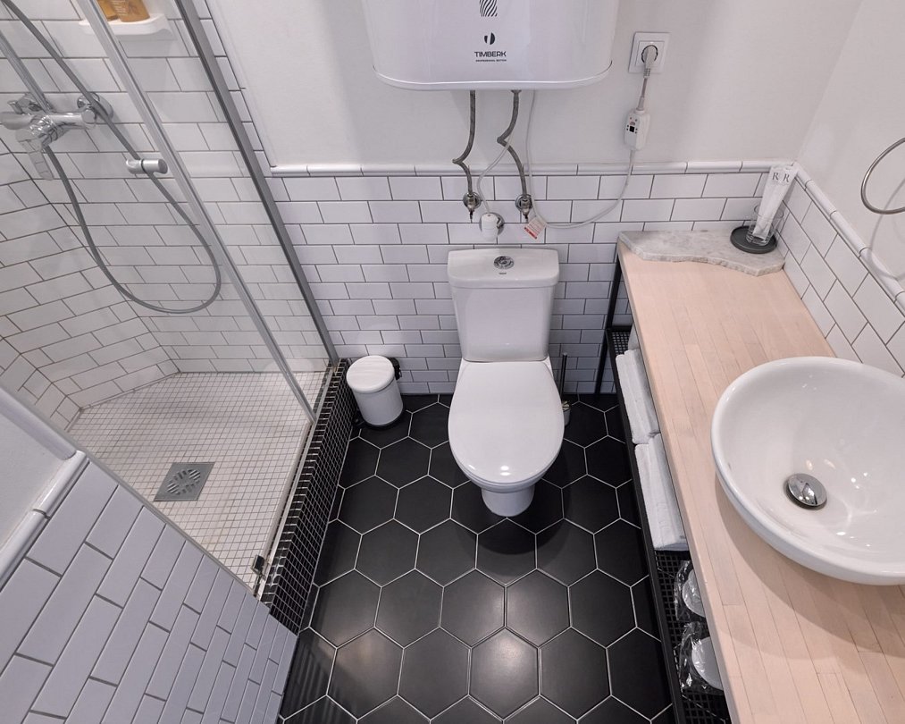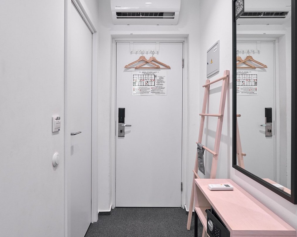 Wi-Fi, фен, электронные замки, душевая кабина, санузел, гигиенические средства, односпальная кровать, вешалки, багажная тумба, зеркало, ковровое покрытие, отопление, вид во двор, высокие потолки, москитная сетка, телевизор со Smart TV, без питомцевВ гостиничном номере
