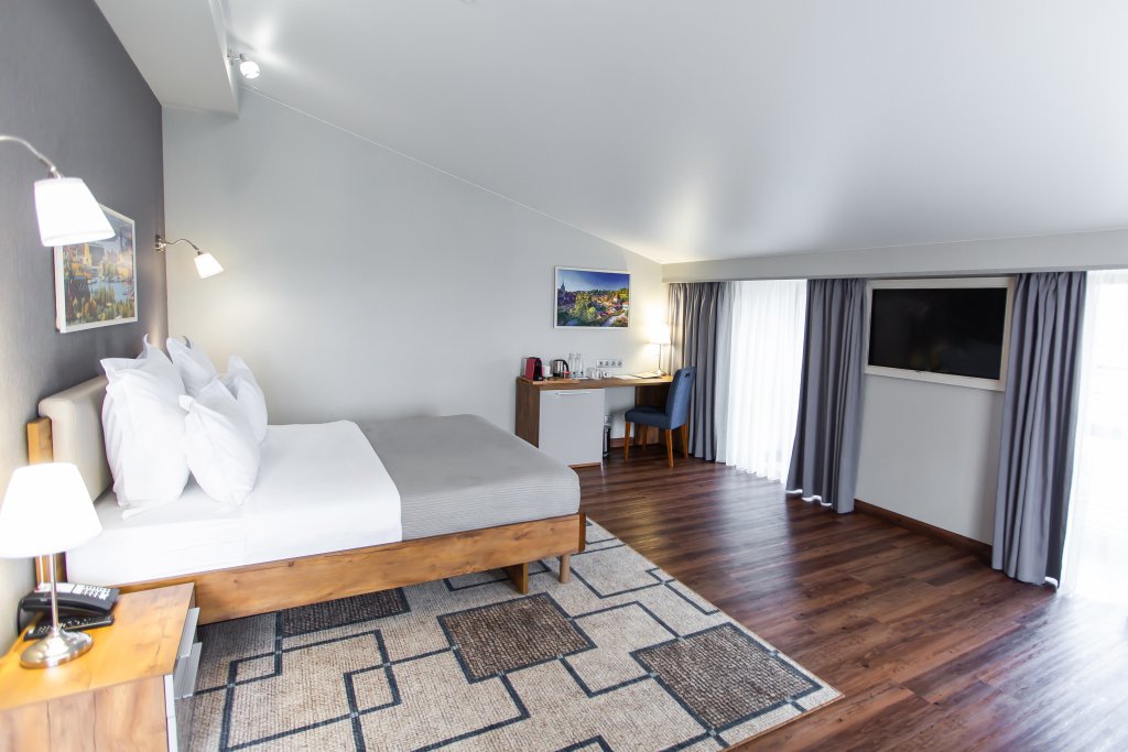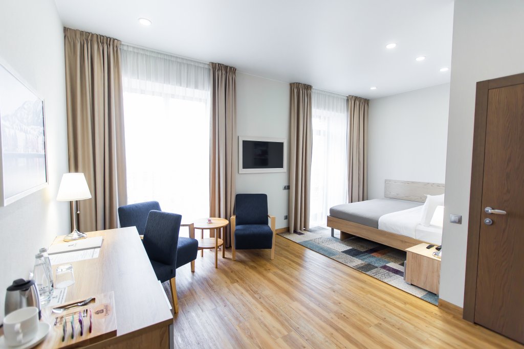 Чтобы вы могли отдохнуть после долгого дня, в номере есть телевизор, мини-бар, халат и тапочки. Оснащение зависит от выбранной категории номера.
