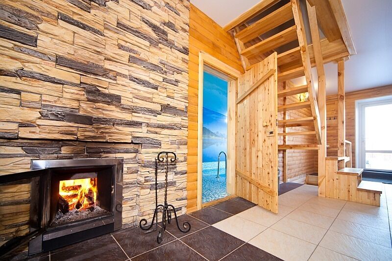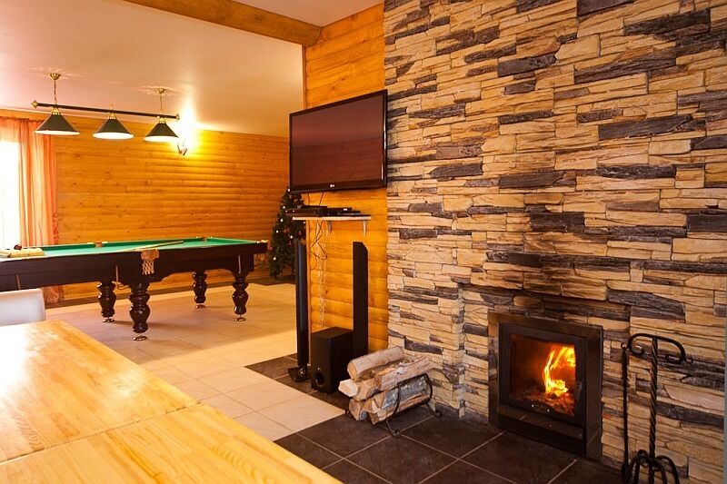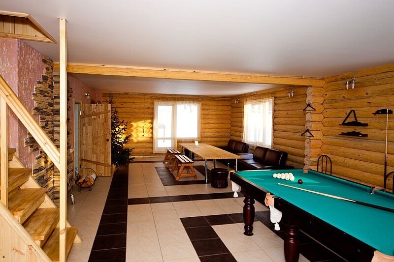 Для комфортного времяпровождения гостям предлагаются уютные коттеджи. В каждом коттедже имеется сауна с бассейном и комнатой отдыха, интерьер которой разработан согласно индивидуальному дизайнерскому проекту. Помимо этого, к Вашему расположению просторный зал с удобными мягкими диванами, плазменный телевизор, камин, караоке, уютная кухня и санузел. Коттеджи окружает большая ухоженная территория, на которой можно организовать чудесный пикник. Для приготовления шашлыка имеется мангал. Также можно сыграть увлекательную партию в бильярд или сразиться в настольный теннис.