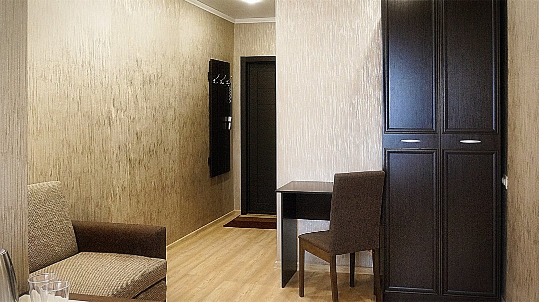 телевизор, спутниковое телевидение, кабельное телевидение, Wi-Fi, холодильник, светильник, настольные лампы, фен, вентилятор, обогреватель, ванна или душевая кабина, санузел, халаты, тапочки, гигиенические средства, двуспальная кровать, тумбы, стулья, шкаф для одежды, вешалки, зеркало, чайный набор, набор посуды, чайник, унитаз, раковина, косметическое зеркало, душ, кулер на этаже, вид во двор, стол, туалетные средства, туалет, цифровое тв, диван-кровать, мини-холодильник, москитная сеткаВ номере