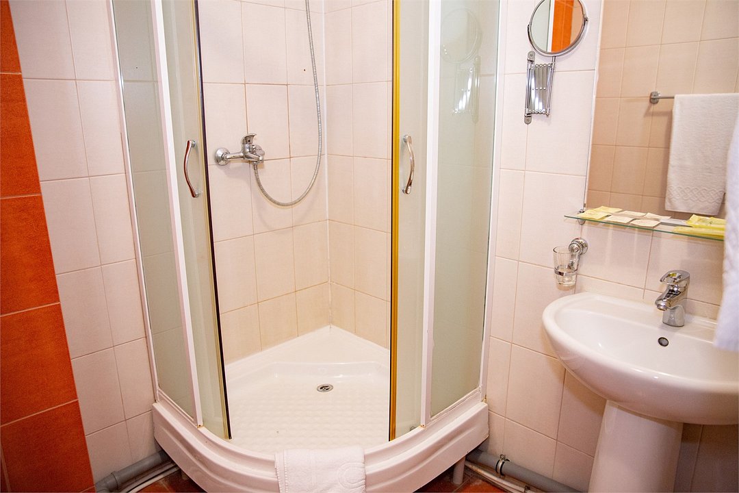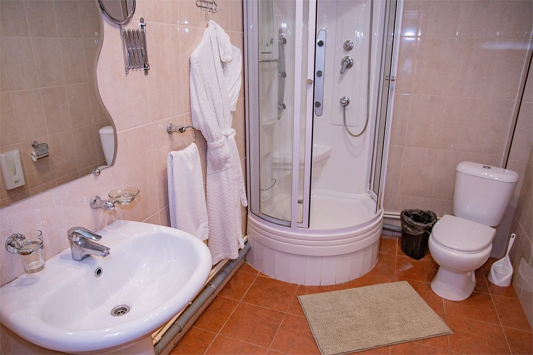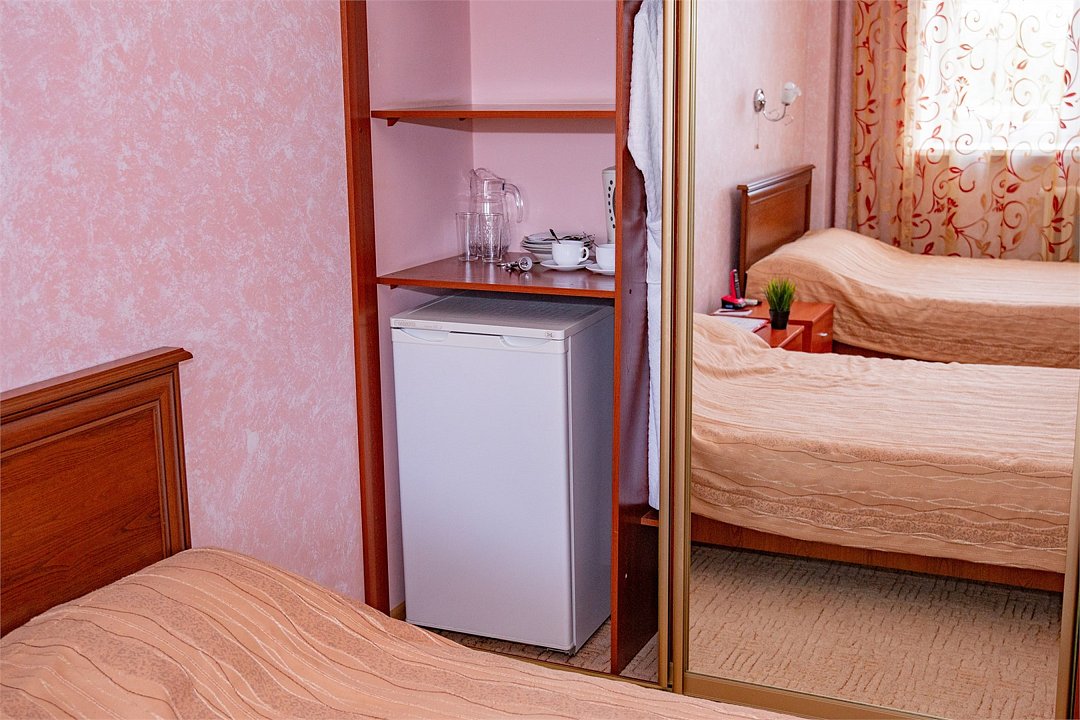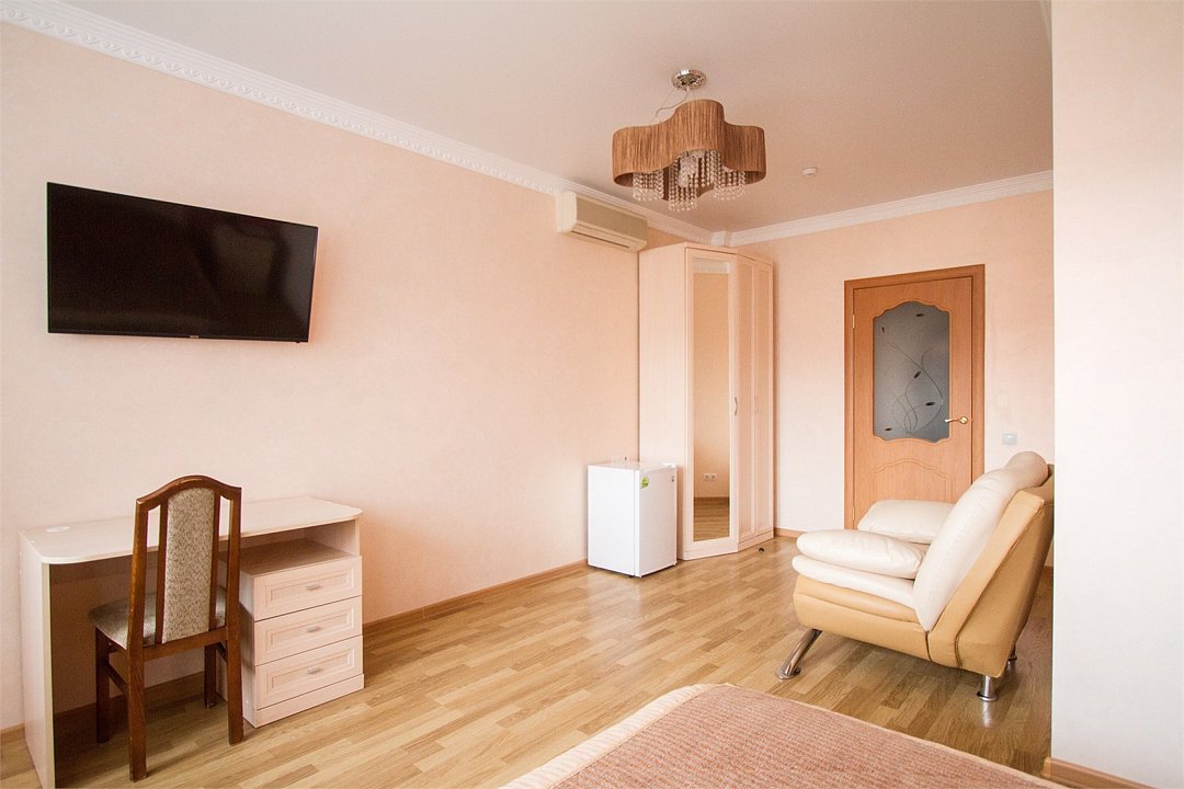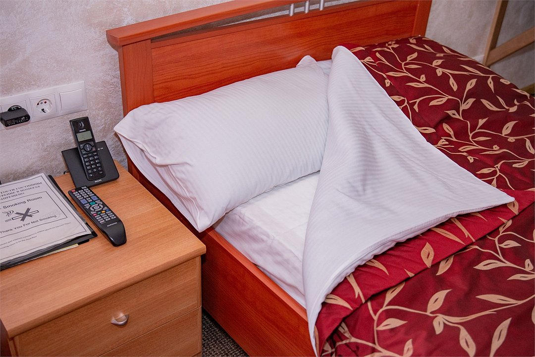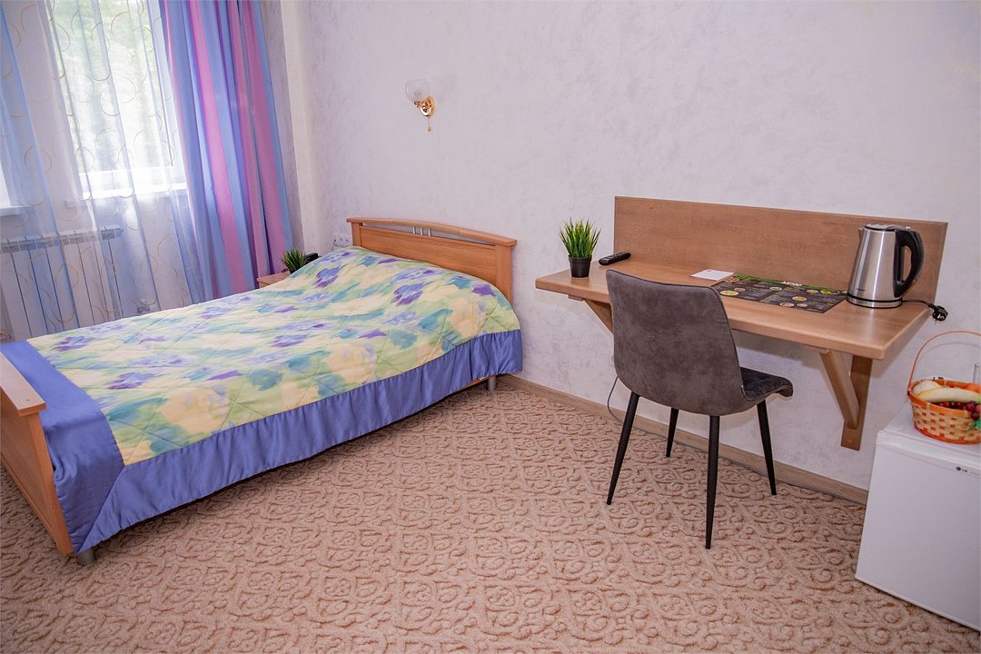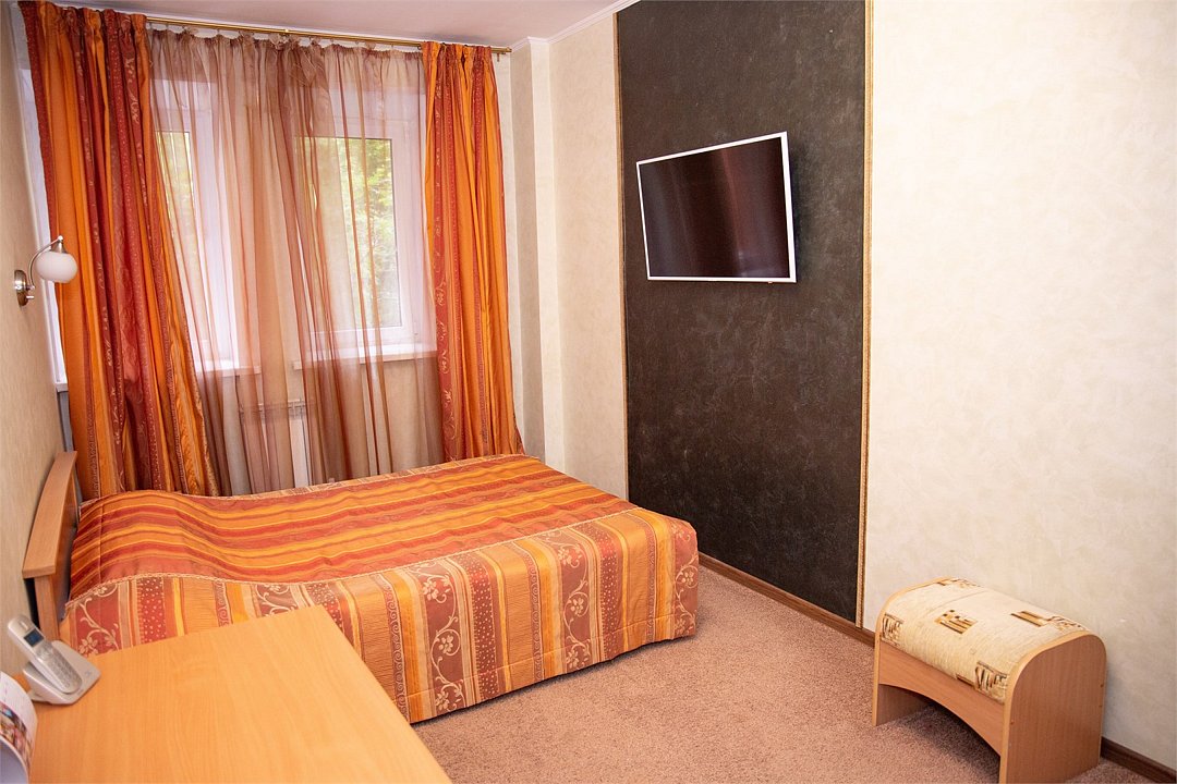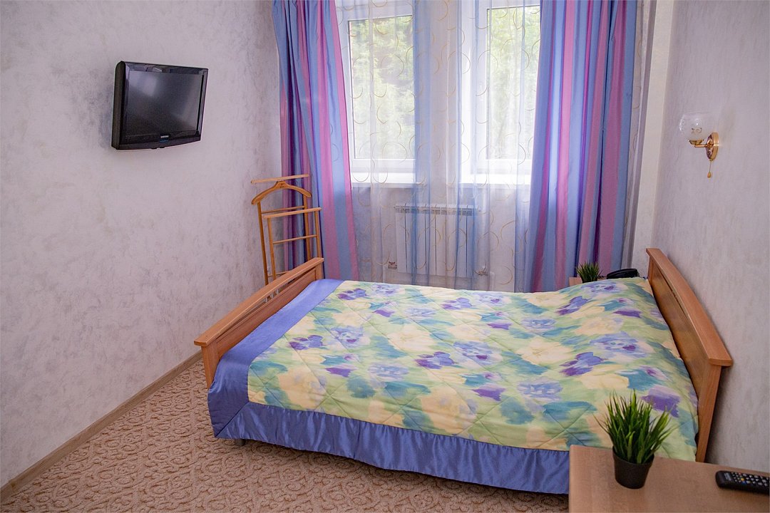 Номер 1-й категории повышенной комфортности. Современные, удобные номера площадью от 20 до 25 м². Оснащены всем необходимым для Вашего комфортного пребывания. К услугам гостей полный набор одноразовых принадлежностей: халат, тапочки, отельная косметика.Услуги и удобства