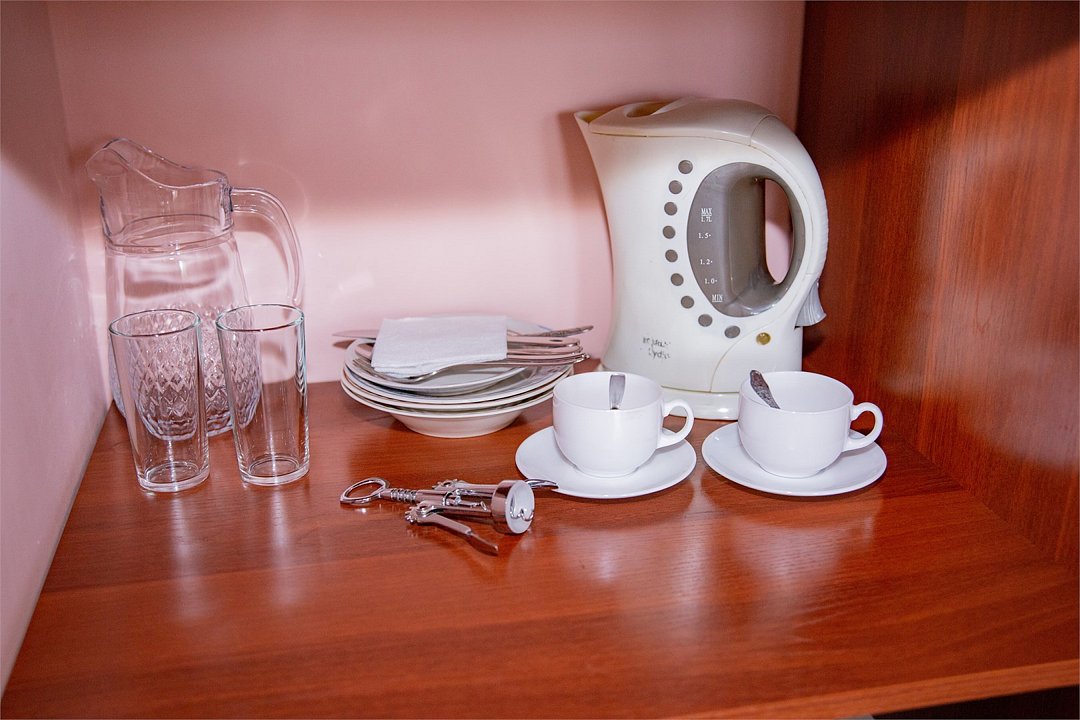 кабельное телевидение, Wi-Fi, телефон, фен, вентилятор, обогреватель, душевая кабина, халаты, банные полотенца, тапочки, гигиенические средства, полутораспальная кровать, гладильная доска, шкаф для одежды, вешалки, журнальный столик, зеркало, мини-бар, чайный набор, набор посуды, обслуживание номеров, информационная карта, меню, чайник, унитаз, косметическое зеркало, питьевая вода, отопление, кулер на этаже, вид во двор, стаканы, стул, тумба, туалетные средства, телевизор с плоским экраном, мини-холодильник, номер для некурящихВ гостиничном номере