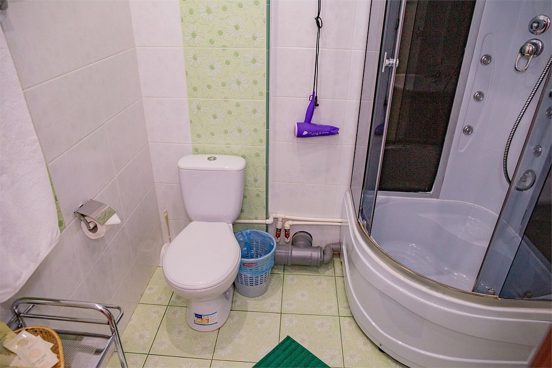 Удобные номера 1-й категории площадью от 15 до 18 м². По специальной цене. Оснащены всем необходимым для Вашего комфортного пребывания. К услугам гостей полный набор одноразовых принадлежностей: халат, тапочки, отельная косметикаУслуги и удобства