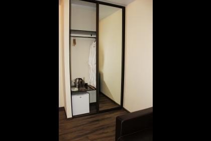 Wi-Fi, фен, система безопасности, обогреватель, ванная комната, душевая кабина, гидромассажный душ, банные принадлежности, банные полотенца, тапочки, гигиенические средства, двуспальная кровать, тумбы, шкаф для одежды, гардеробная, вешалки, журнальный столик, зеркало, мини-бар, набор посуды, минеральная вода, чайник, раковина, питьевая вода, отопление, душ, вид на город, кулер на этаже, ламинат, кухонная посуда, стаканы, столовые приборы, тумба, туалет, цифровое тв, телевизор с плоским экраном, мини-холодильник, шкаф-купе, можно с питомцамиВ номере