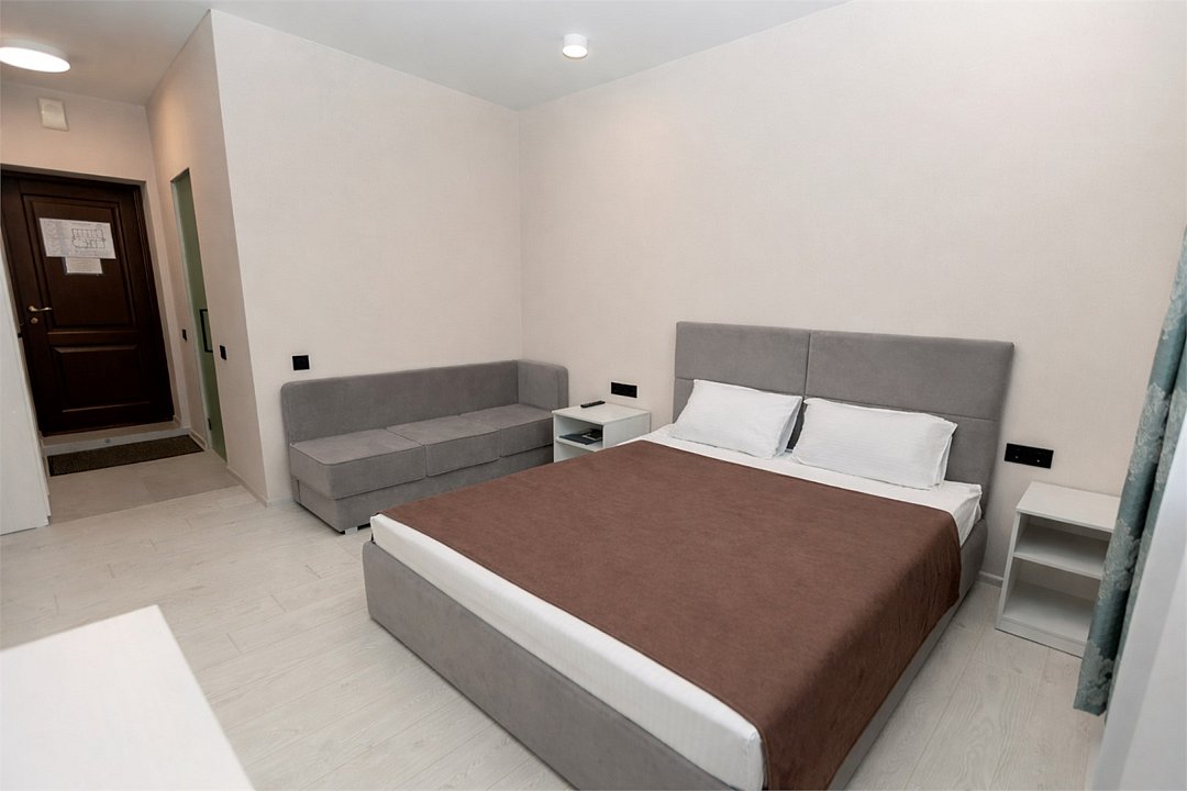 Удобный номер повышенной комфортности для проживания большой семьей или 3-я взрослыми, пребывающими в командировке. Номер оснащен 2-я большими кроватями и удобным раскладывающимся диваном. В номере есть письменный стол, два больших шкафа, прикроватные тумбочки.Услуги и удобства