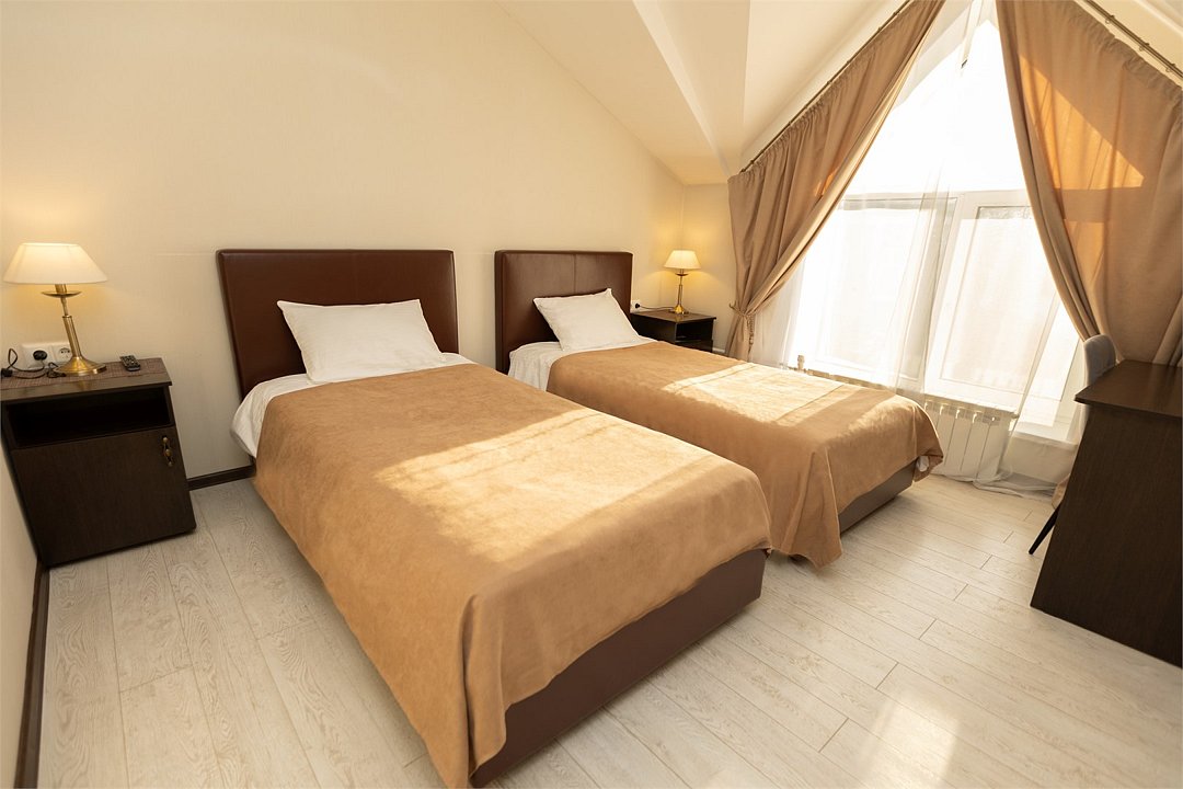 Уютный, функциональный номер на 3-м (по евро-стандартам - на 2-м) этаже для путешествий с ребенком или для командировок. В номере две широких односпальных кровати.Услуги и удобства