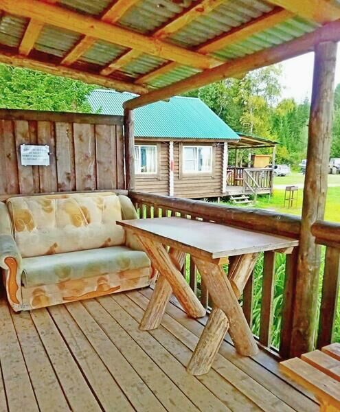 2 двуспальные кровати, телевизор, холодильник, кухонный гарнитур, обеденная зона, чайник, большая веранда, зона для пикника с мангалом. Удобства на улице.