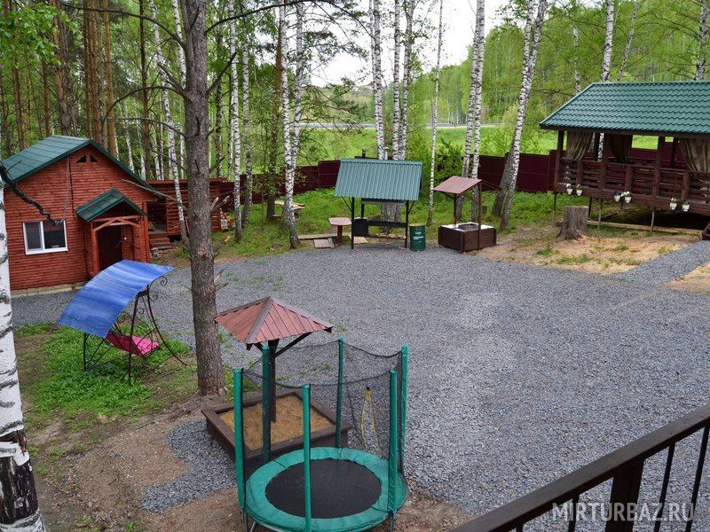 Для детей имеется батут и песочница.