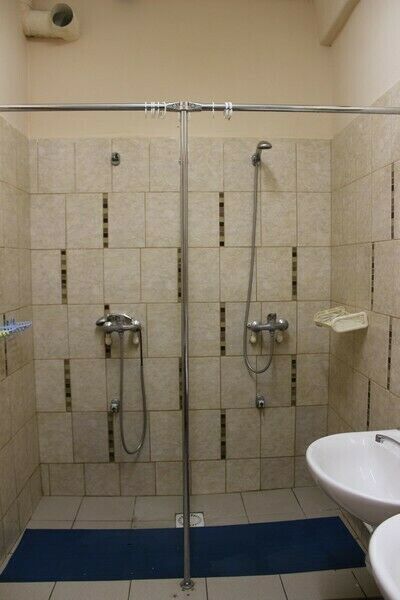 Односпальные кровати в комнате, душ и туалет на этаже.