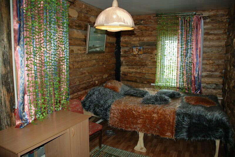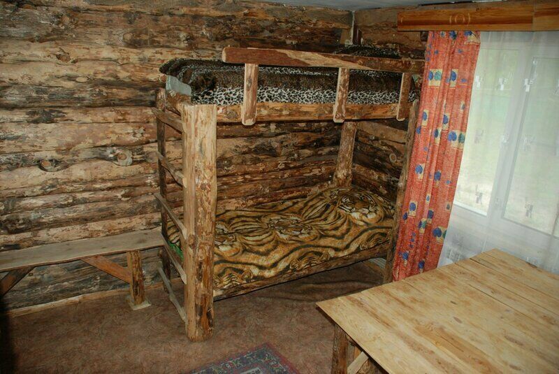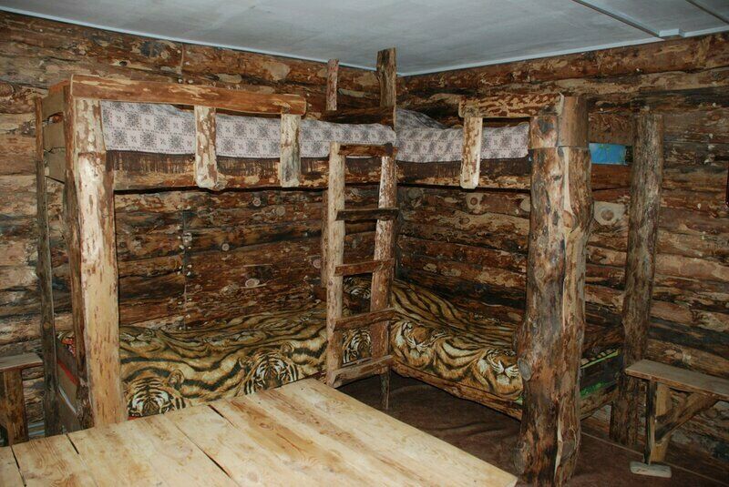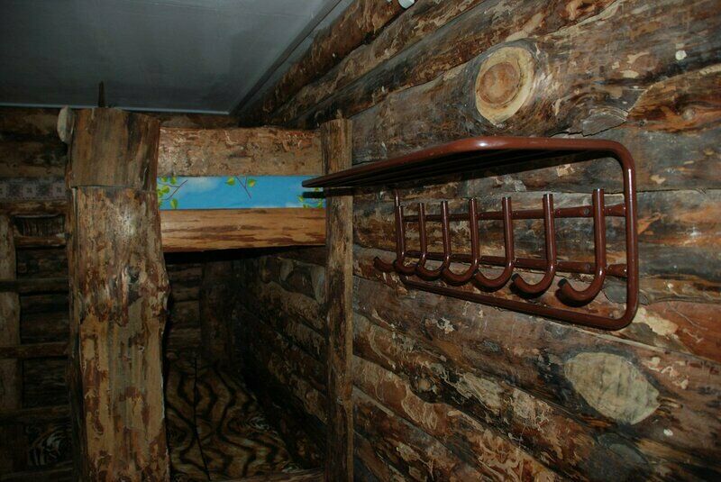 Шестиместный номер, выполненный в стиле «охотничья изба». В номере: 6 кроватей-топчанов, раздевалка, стол, скамейки.
