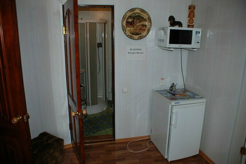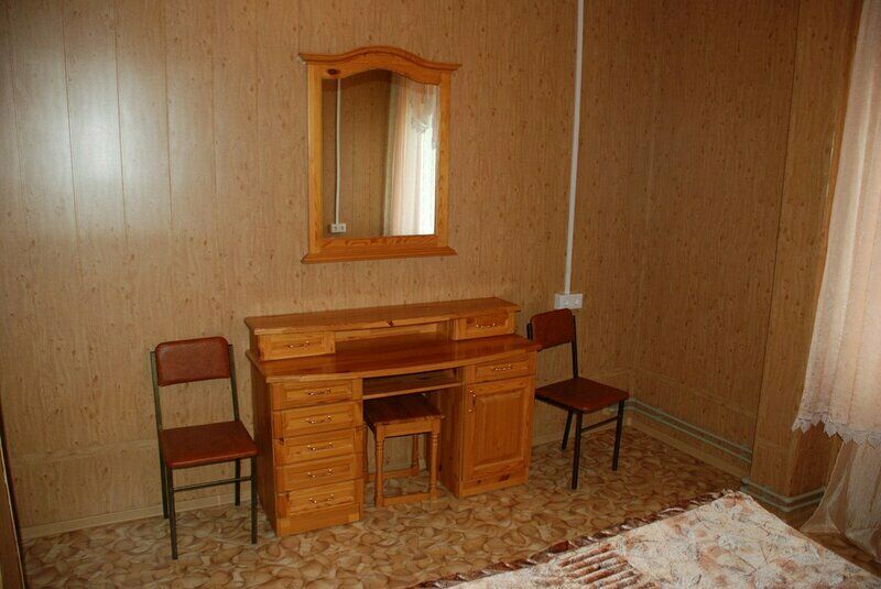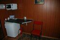 В номере: двуспальная кровать, шкаф для одежды, тумбочка, стол, два стула, кулер, телевизор, холодильник, микроволновая печь. WC, душевая кабина, халат, тапочки, набор полотенец, фен. Кухня - столовая на этаже.