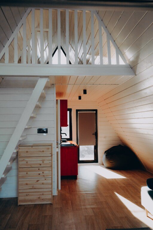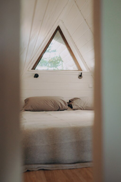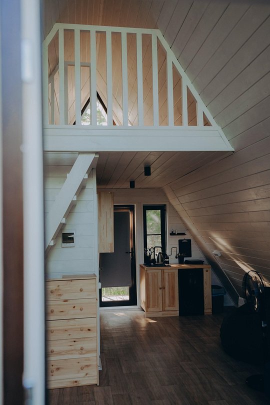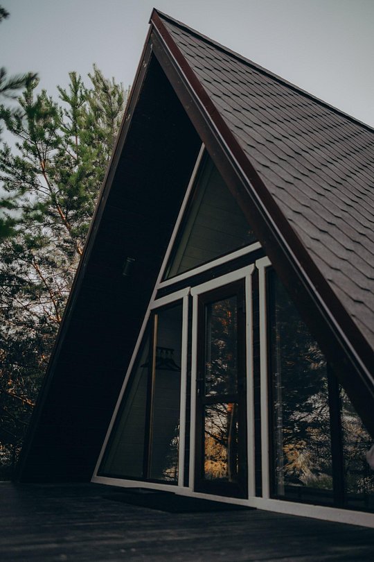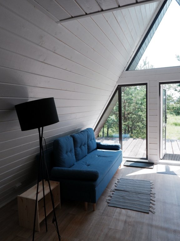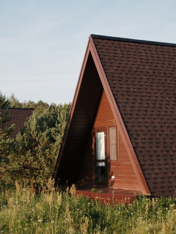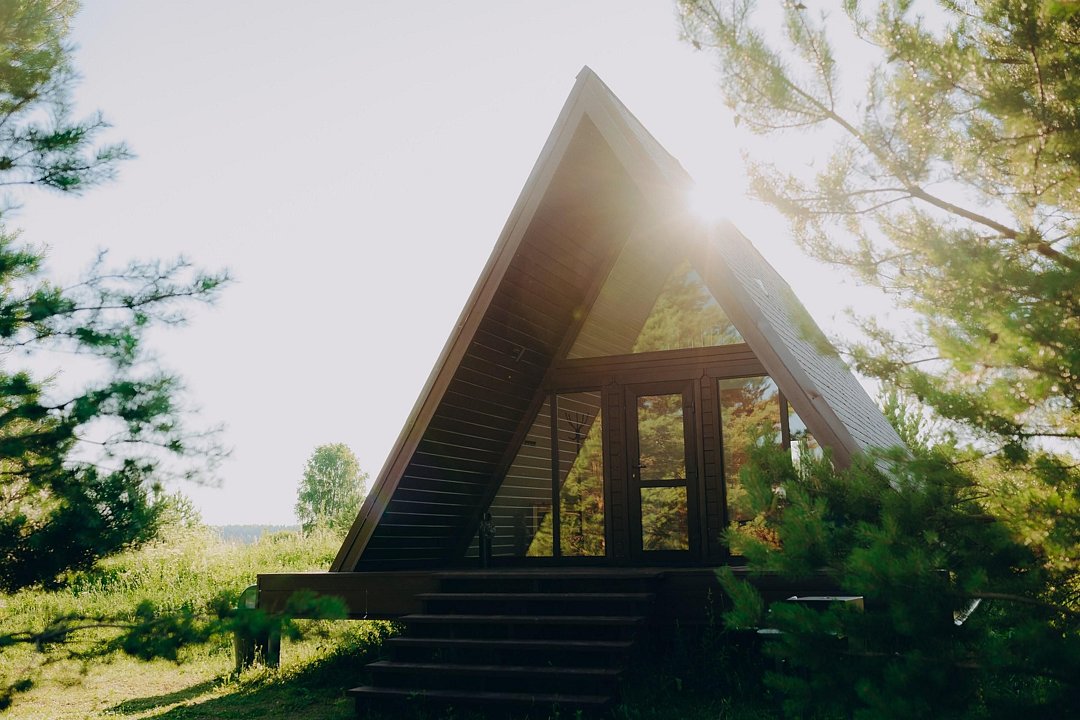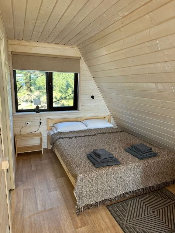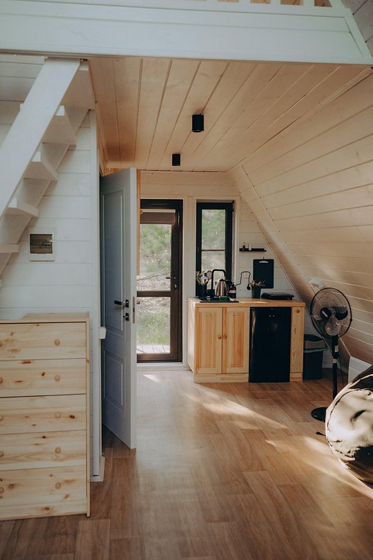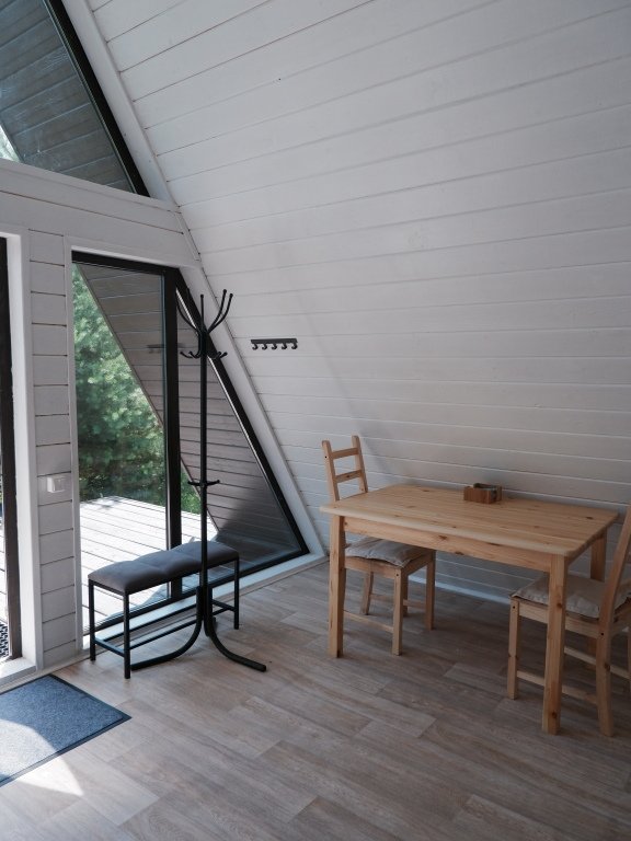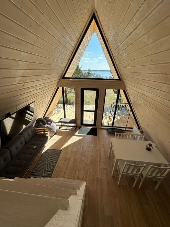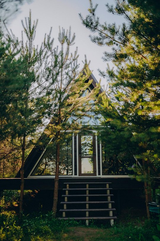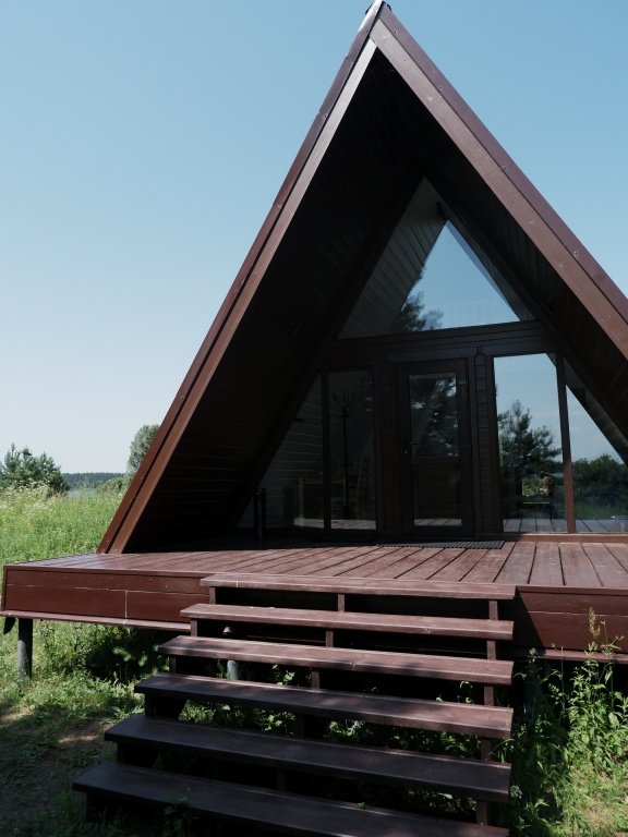 Дом А-фрейм вместимостью до 4 человек. В распоряжении гостей: двуспальная кровать, раскладной диван, мини-кухня, собственный санузел.