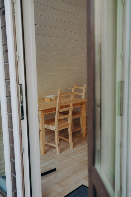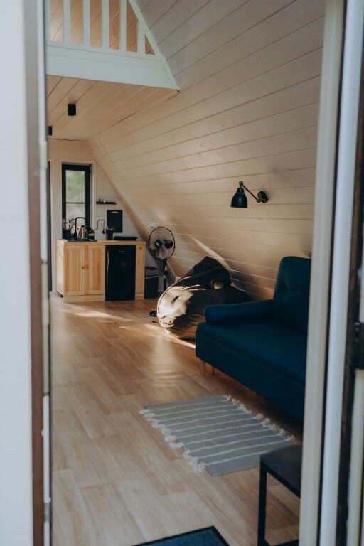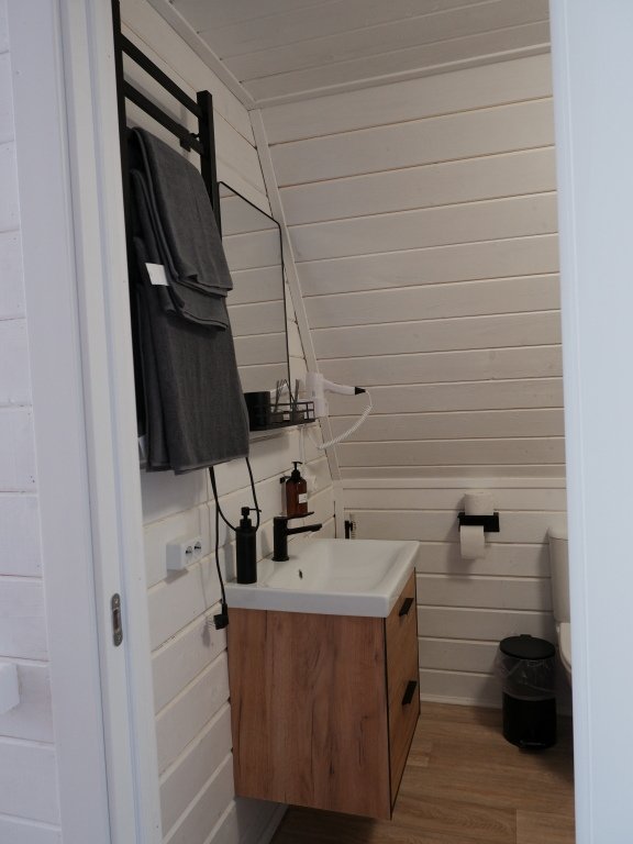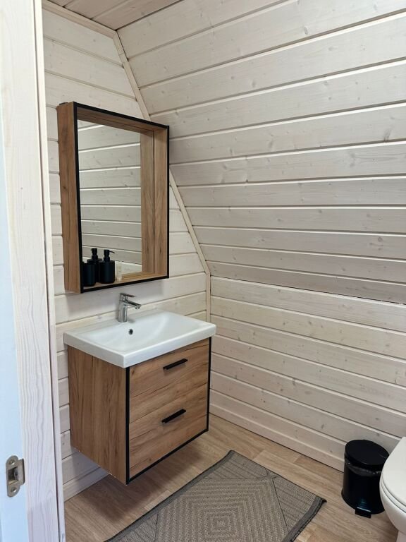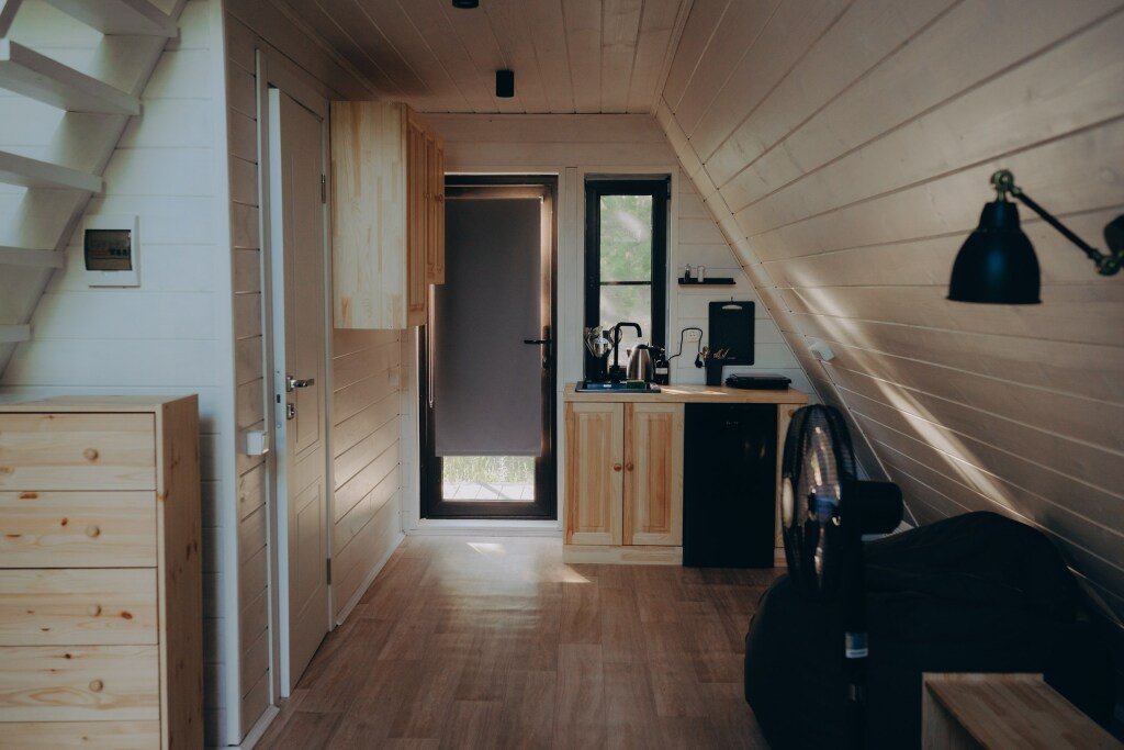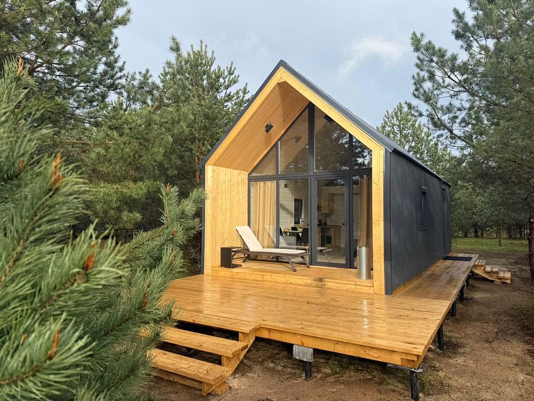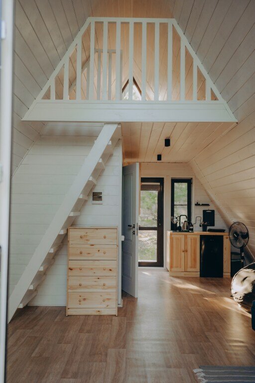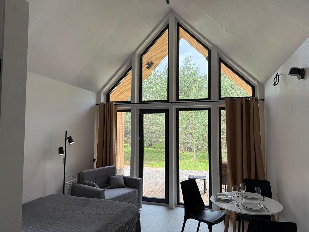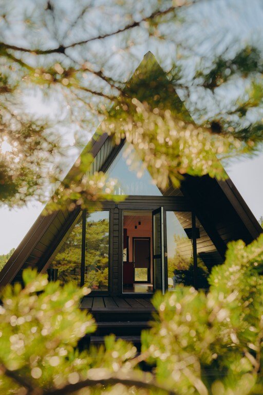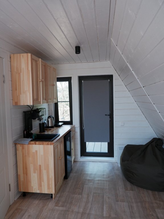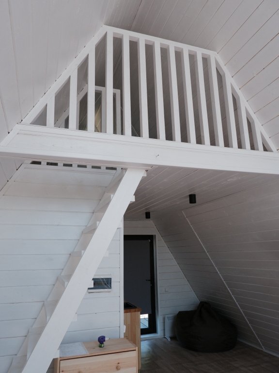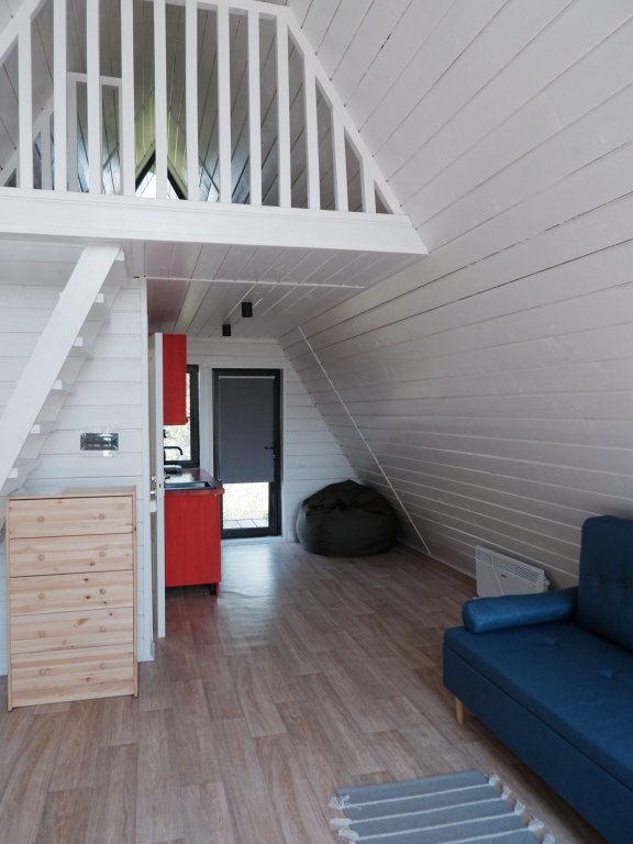 Дом А-фрейм вместимостью до 4 человек. В распоряжении гостей: двуспальная кровать, раскладной диван, мини-кухня, собственный санузел.