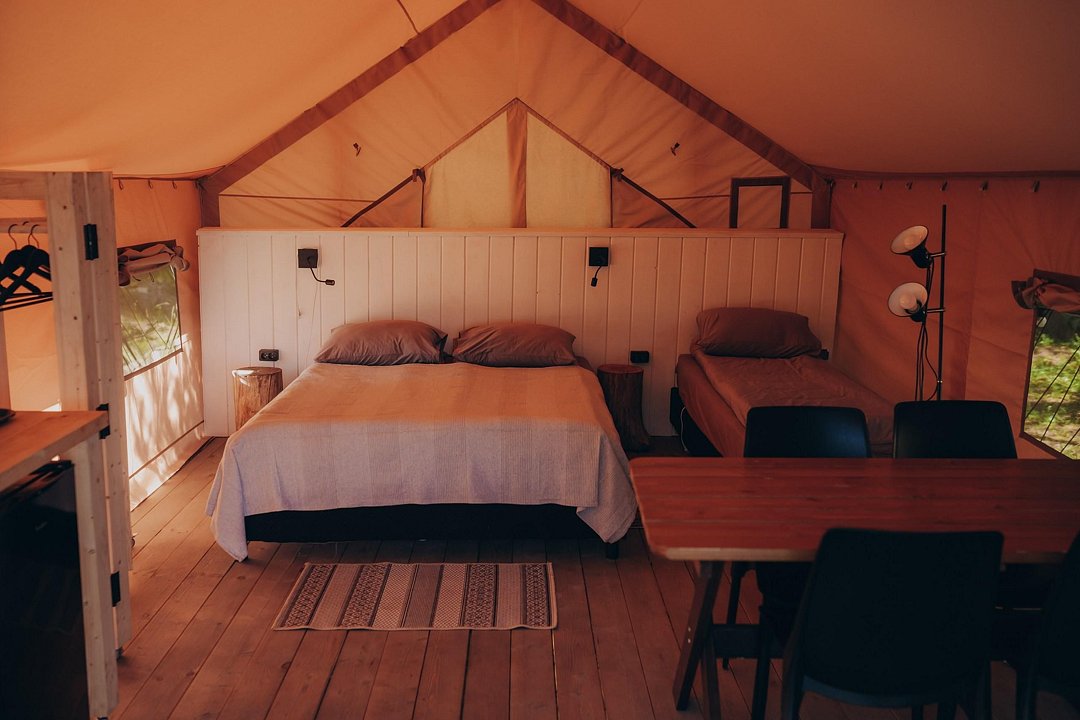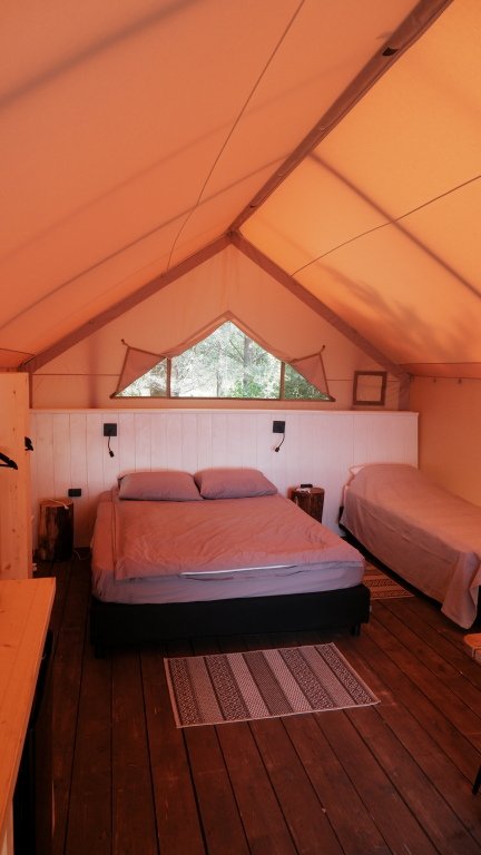 Одна односпальная кровать, одна двуспальная кровать, одна диван-кроватьВ сафари-тенте