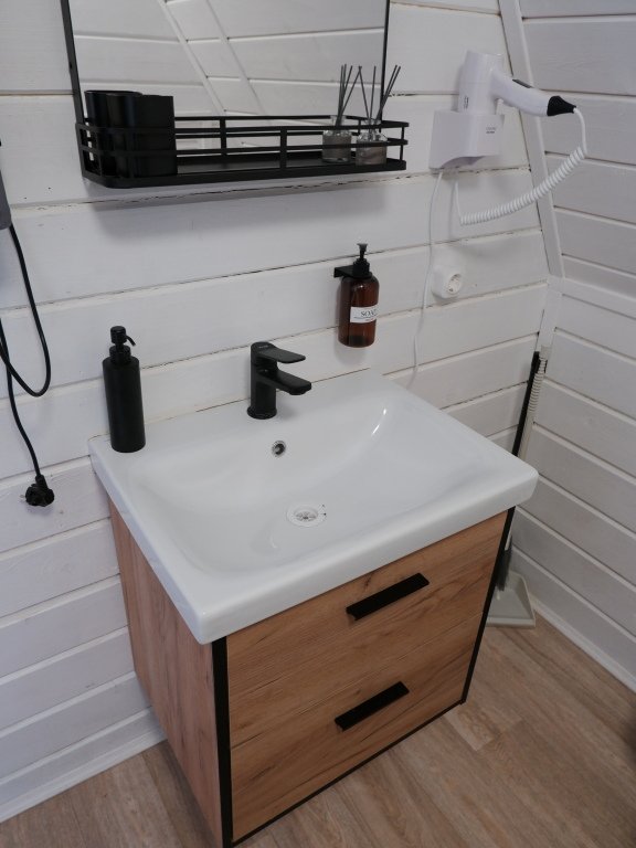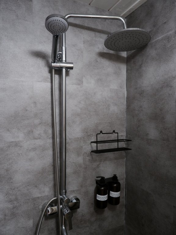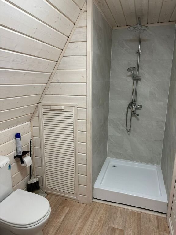 Современный душ, туалет, полотенца и средства гигиены в наличии.