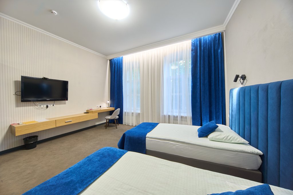 Двухместный номер с двумя отдельными кроватями. В номере: телевизор, холодильник, фен, санузел и душевая с мыльными принадлежностями. Номер оборудован кондиционером. Номер расположен на третьем этаже отеля (мансарда).Услуги и удобства