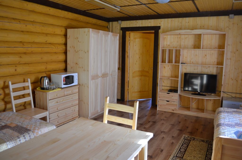В номере: ТВ, WI-FI, душевая кабина, чайник, обеденный стол, шкаф, микроволновая печь, холодильник, четыре односпальные кровати, индивидуальное отопление, горячая и холодная вода, отдельный вход.