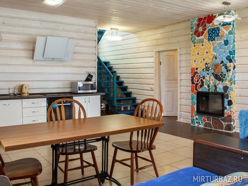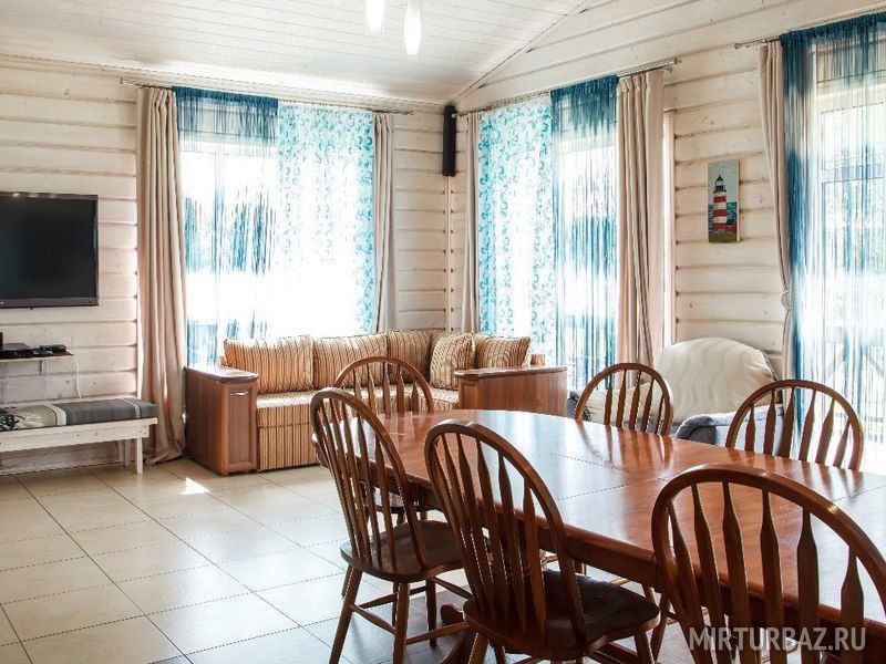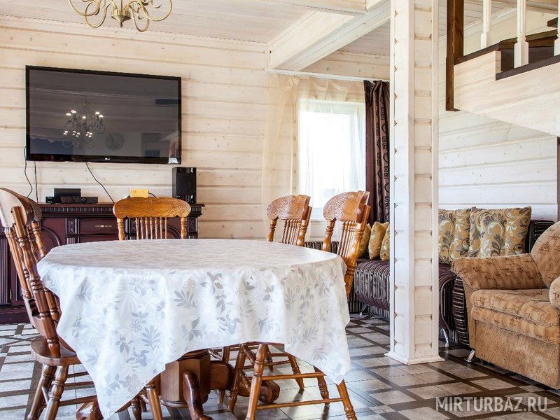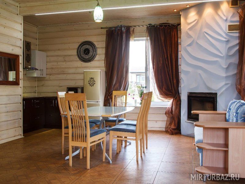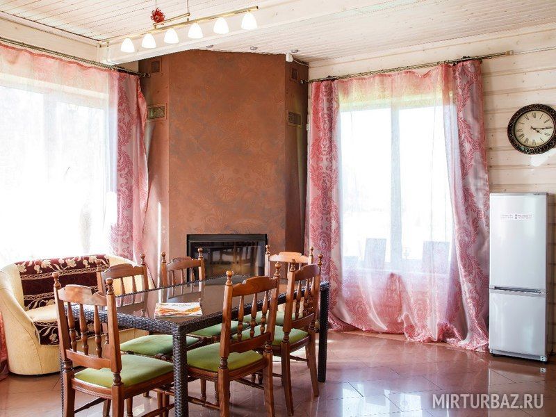 Холл: мягкая мебель, стол на 10 персон, стулья, действующий камин, спутниковое телевидение.