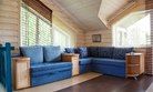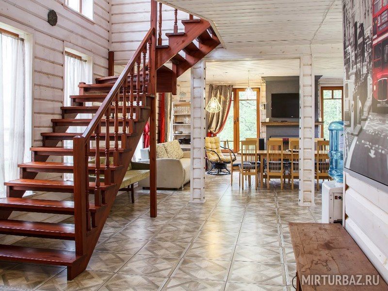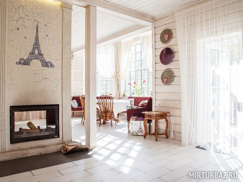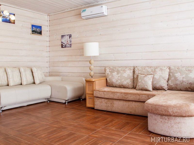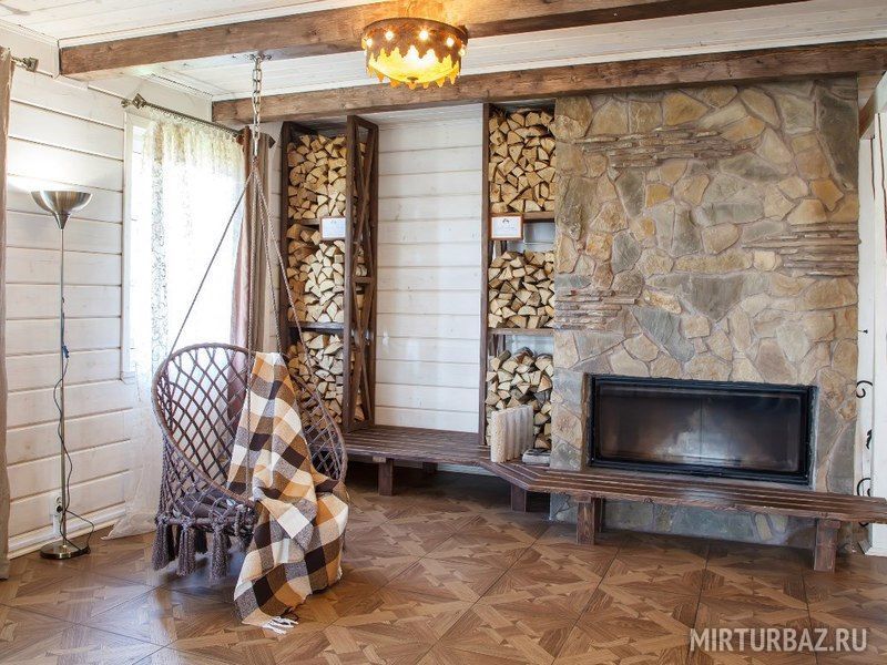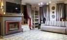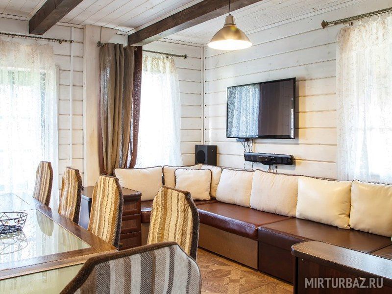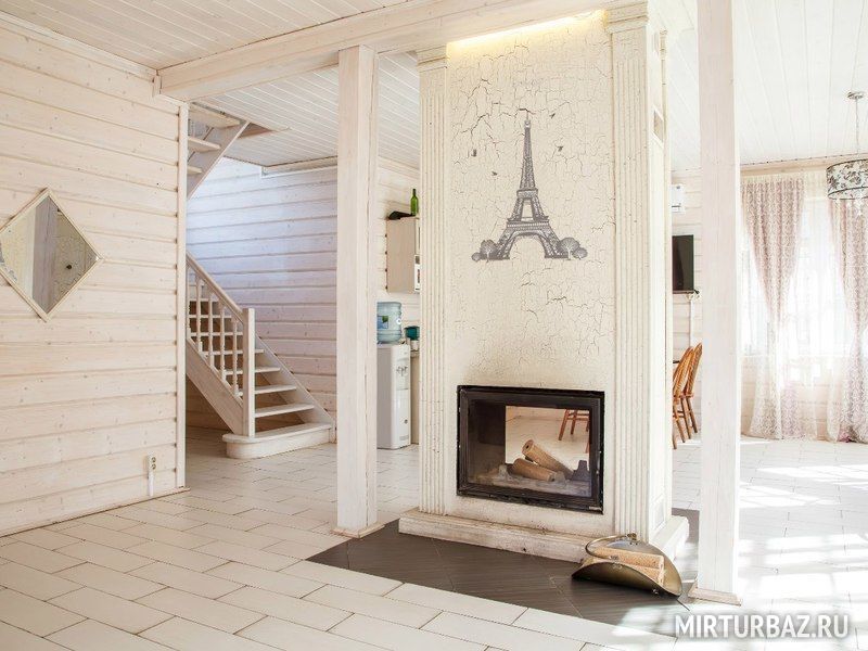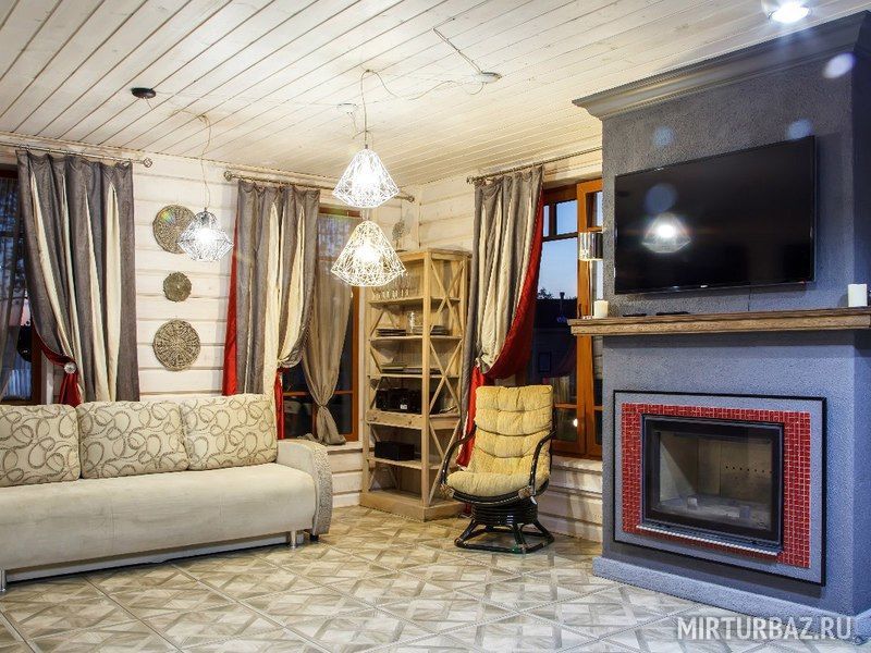 - Холл: мягкая мебель, стол на 10 персон, стулья, действующий камин, спутниковое телевидение.