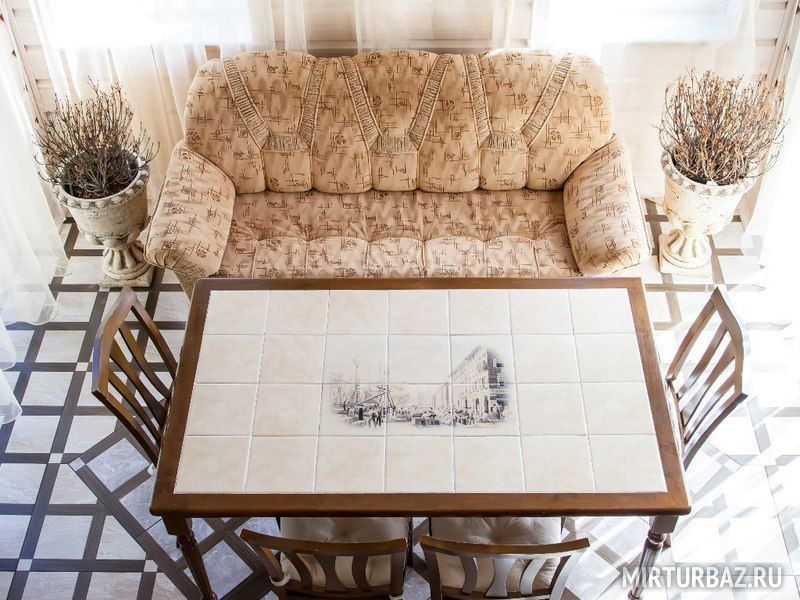 - Холл: один раскладывающийся диван, выход на большую террасу.