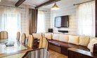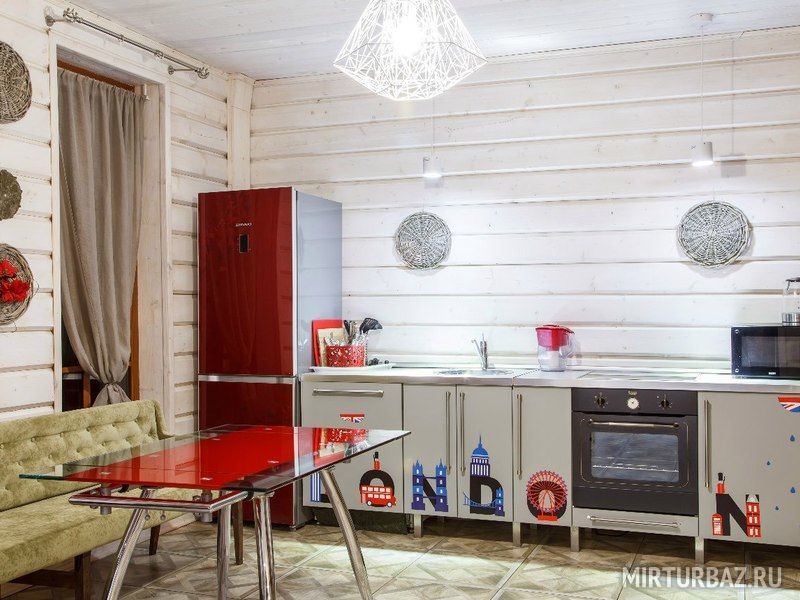 - Кухня: электроплита, встроенный духовой шкаф, посудомоечная машина, элекстрический чайник, микроволновая печь, вытяжка, холодильник, посуда для приготовления еды, набор посуды для сервировки на 12 и более персон.