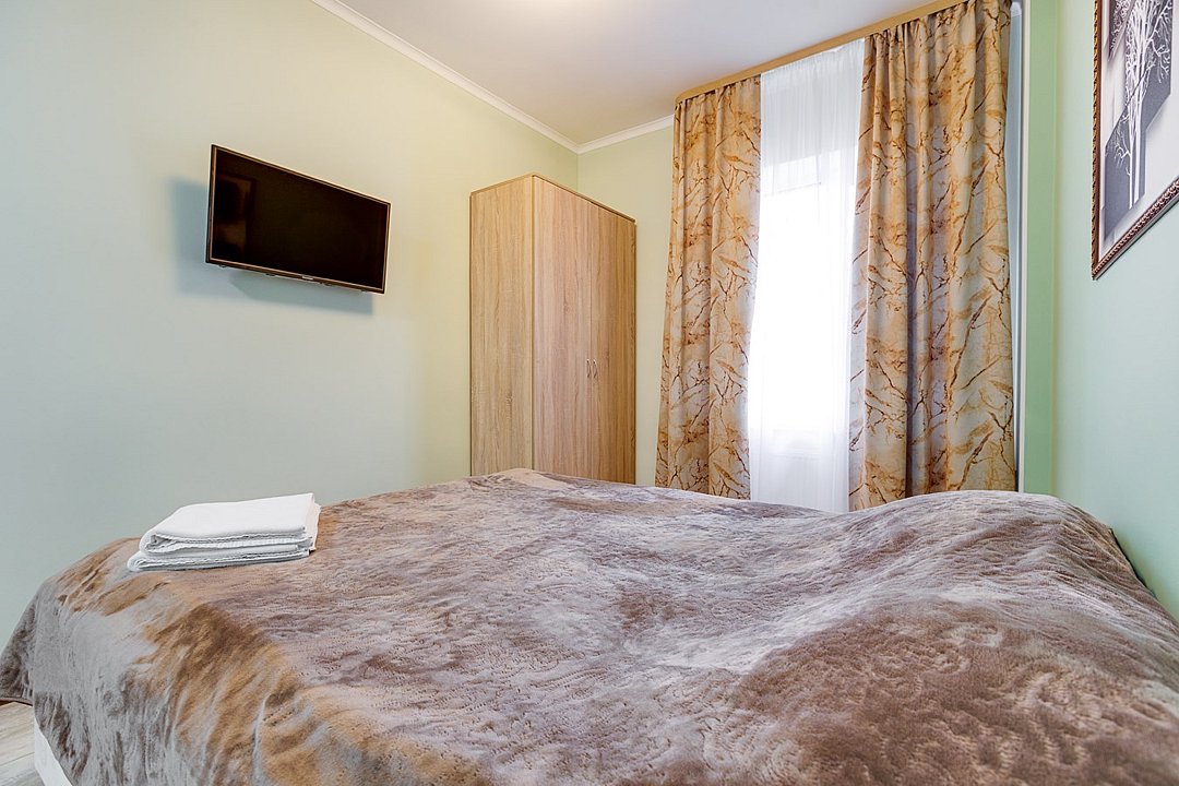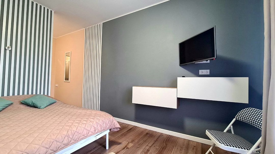 Номер уютно обставлен и оснащён необходимым, чтобы отдохнуть после долгого и насыщенного дня. Имеются телевизор и халат. Оснащение зависит от выбранной категории номера.