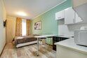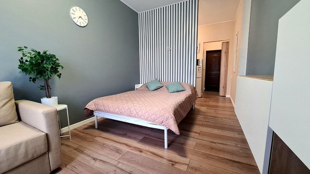 Зеленая квартира-студия с одной большой кроватью/двумя раздельными кроватями