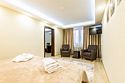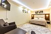 Этот номер непременно понравится любителям стилевых изысков и людям, не привыкшим экономить деньги на личном комфорте. Просторное помещение с шикарной отделкой, изящными аксессуарами и широкой двуспальной кроватью и очень удобным диванчиком - прекрасный вариант отдыха для семьи и влюбленных пар.Услуги и удобства