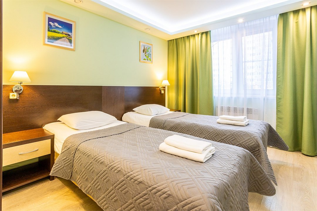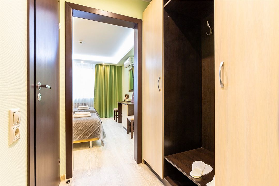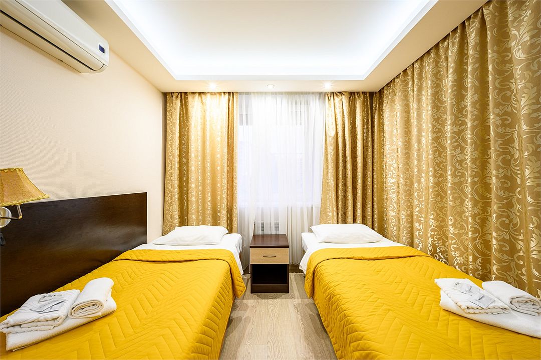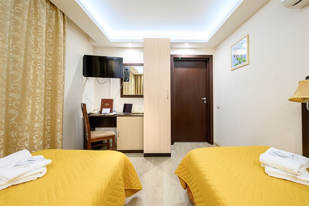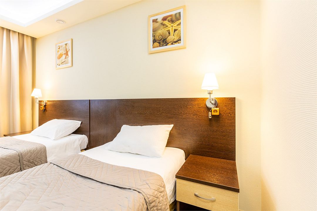 Двухместный номер с двумя небольшими раздельными кроватями. Уютный номер, площадью 15 кв. м, располагает всем необходимым для комфортного проживания. В номере: рабочая зона, вместительный шкаф для одежды и ванная комната (душевая кабина) Максимальное количество гостей в номере: 2 +1 ( дополнительно можно поставить место)Услуги и удобства