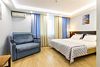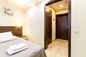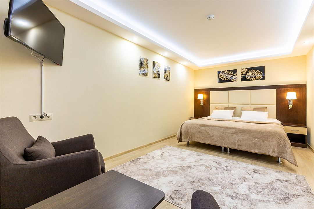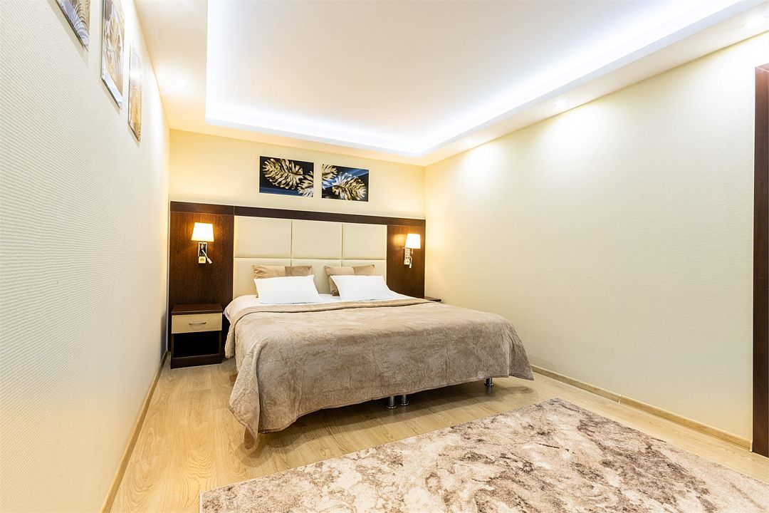 Превосходный вариант для почитателей классических, строго выдержанных интерьеров и ценителей светлого свободного пространства, позволяющего расслабиться и отдохнуть, чему способствует наличие комфортной двуспальной кровати.Услуги и удобства