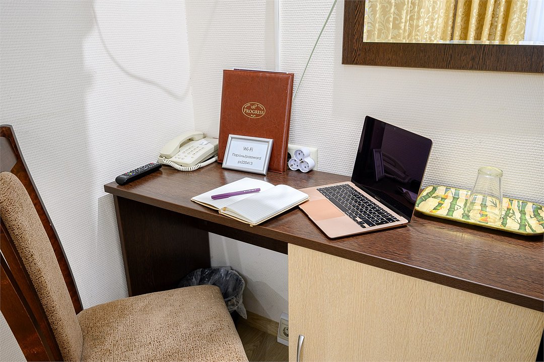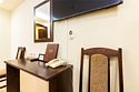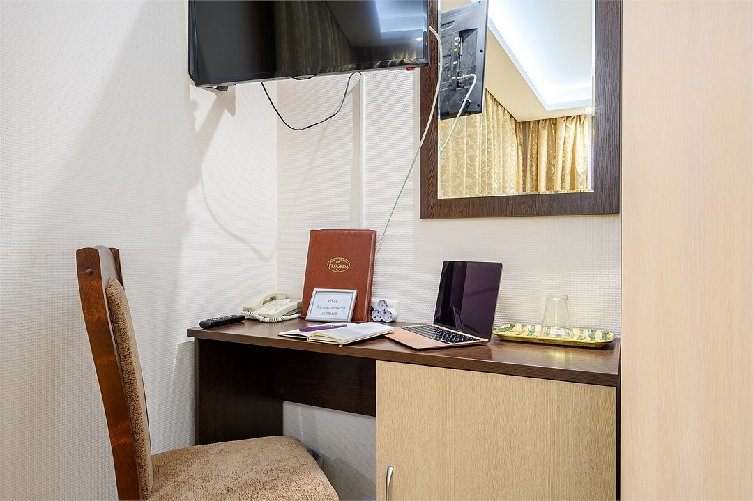 спутниковое телевидение, Wi-Fi, интернет, телефон, кондиционер, система климат-контроля, светильник, фен, система безопасности, обогреватель, ванная комната, душевая кабина, ванна или душевая кабина, водонагреватель, банные принадлежности, банные полотенца, тапочки, гигиенические средства, косметические средства, односпальная кровать, ортопедический матрас, шкаф для одежды, вешалки, письменный стол, зеркало, звуконепроницаемые стены и окна, мини-бар, обслуживание номеров, сейф, раковина, отопление, душ, вид на город, кулер на этаже, центральное кондиционирование, общая ванная комната, вид во двор, ламинат, стаканы, внешняя ванная комната, стул, стол, тумба, туалетные средства, внутренний телефон, телевизор с плоским экраном, мини-холодильник, гостиничная парфюмерияВ номере