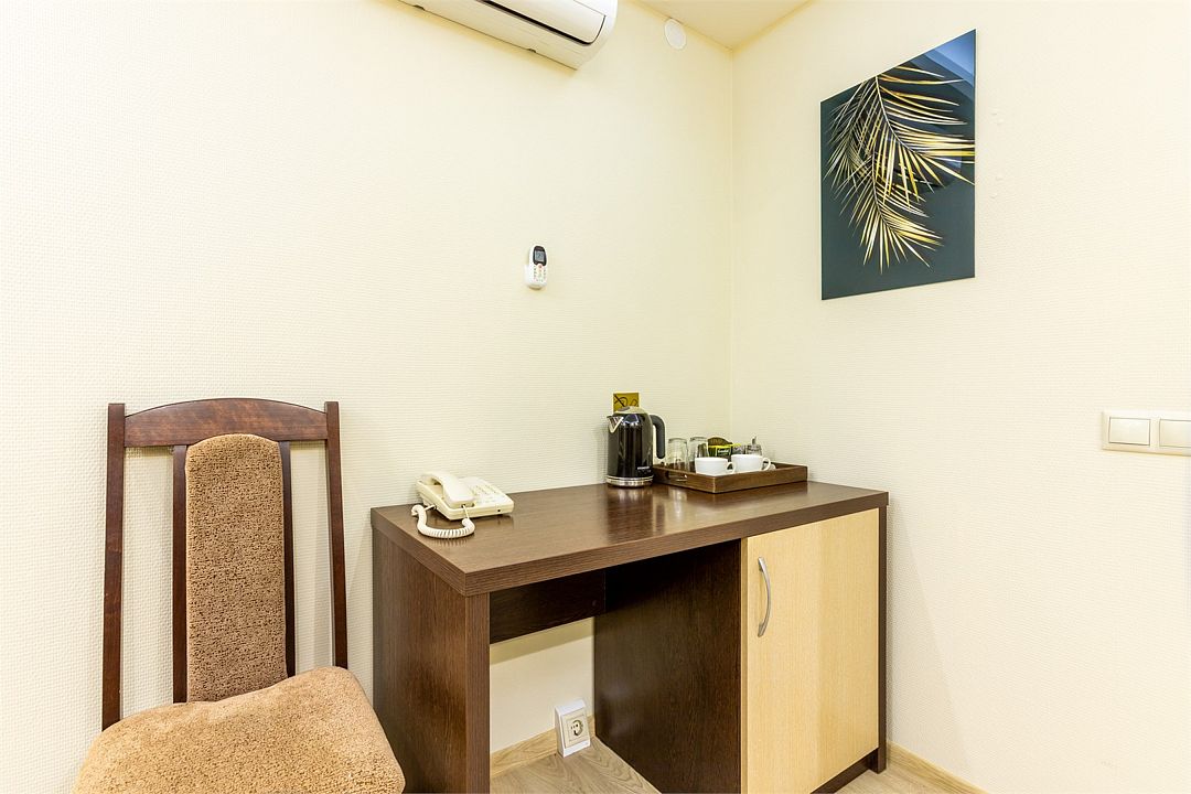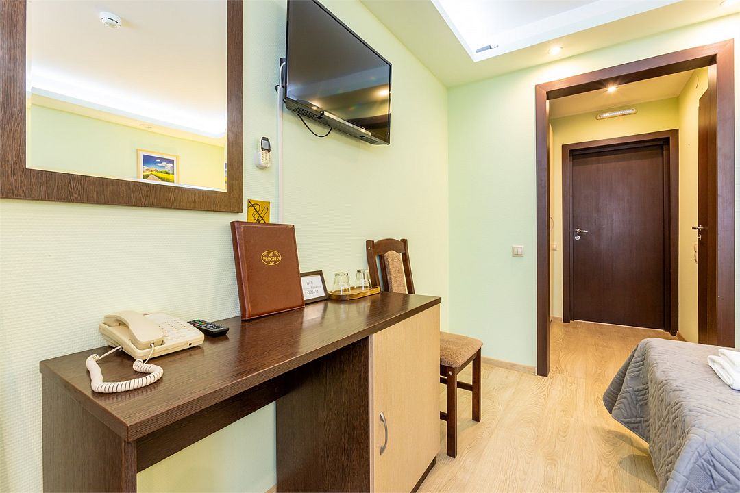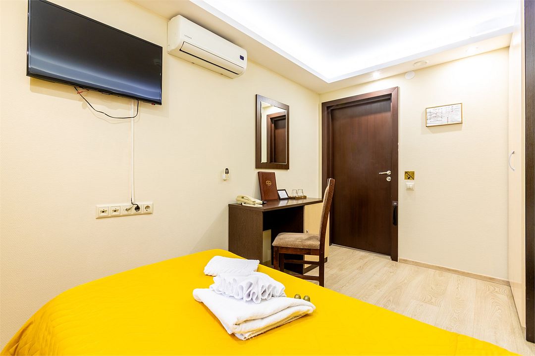спутниковое телевидение, Wi-Fi, интернет, телефон, кондиционер, система климат-контроля, светильник, фен, система безопасности, обогреватель, ванная комната, душевая кабина, ванна или душевая кабина, водонагреватель, банные принадлежности, банные полотенца, тапочки, гигиенические средства, косметические средства, односпальная кровать, ортопедический матрас, шкаф для одежды, вешалки, письменный стол, зеркало, звуконепроницаемые стены и окна, мини-бар, обслуживание номеров, сейф, раковина, отопление, душ, вид на город, кулер на этаже, центральное кондиционирование, общая ванная комната, вид во двор, ламинат, стаканы, внешняя ванная комната, стул, стол, тумба, туалетные средства, внутренний телефон, телевизор с плоским экраном, мини-холодильник, гостиничная парфюмерияВ гостиничном номере