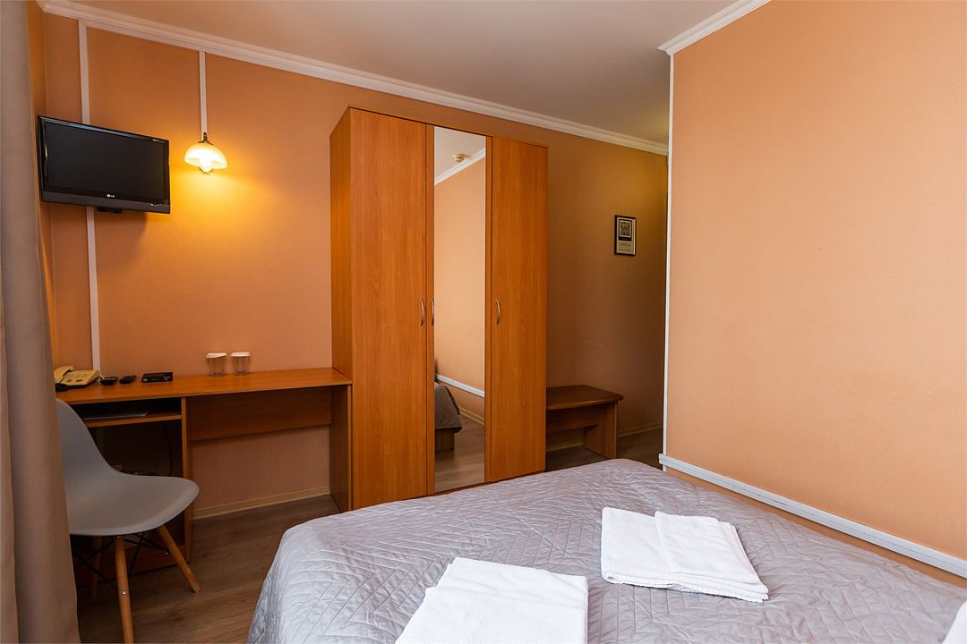 телевизор, кабельное телевидение, Wi-Fi, душевая кабина, санузел, банные принадлежности, банные полотенца, две односпальные кровати, тумбы, шкаф для одежды, гардеробная, вешалки, письменный стол, зеркало, мебельный гарнитур, обслуживание номеров, унитаз, раковина, отопление, душ, кулер на этаже, вид во двор, стаканы, стул, стол, туалетный столик, туалет, внутренний телефон, шкаф-купе, номер для некурящих, рабочий стол, уборка номера, вешалки-плечики, мыло, зеркало в полный рост, прачечная (за дополнительную плату), можно с питомцамиВ гостиничном номере