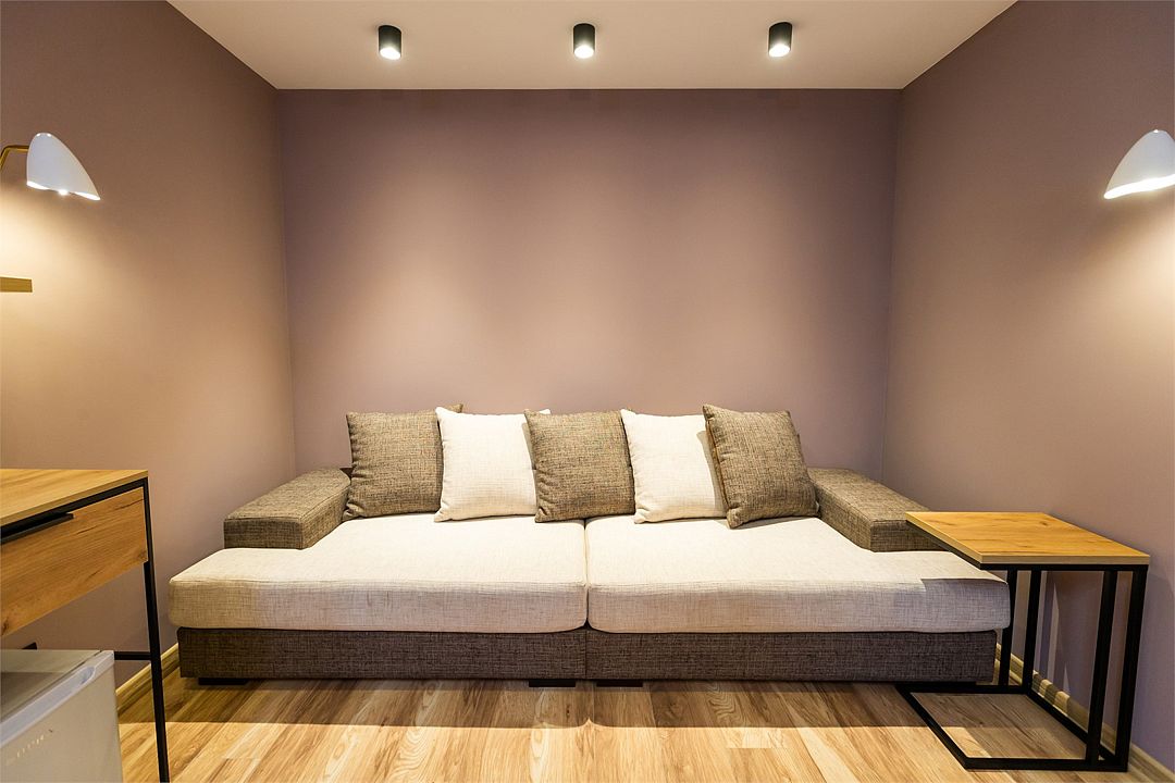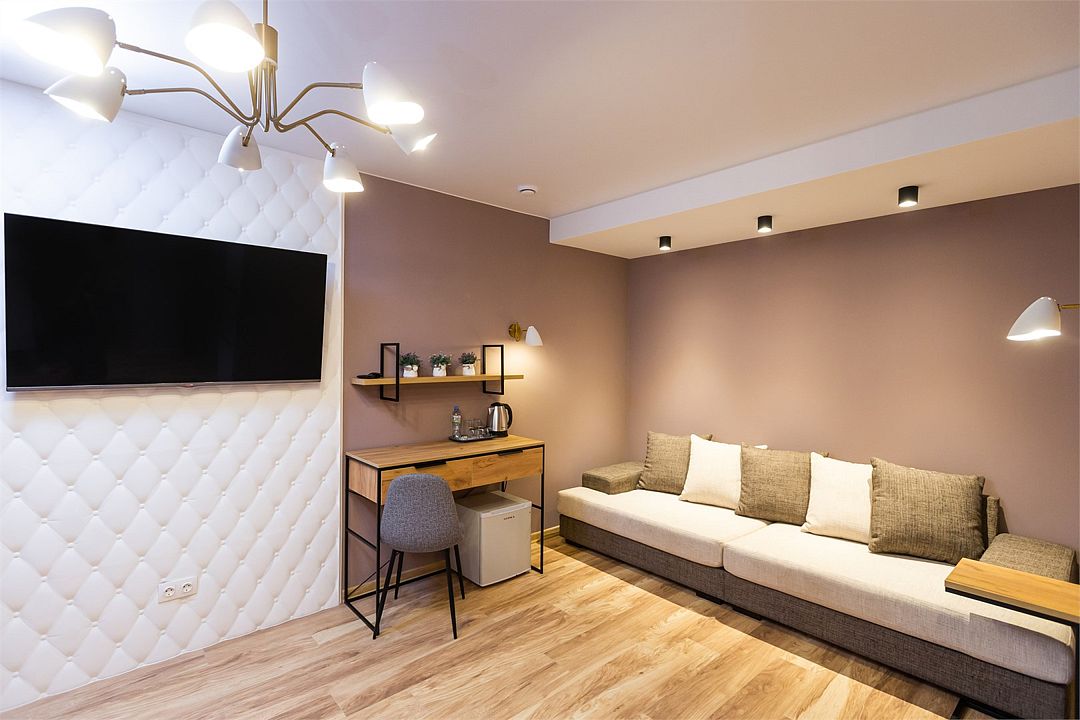 Современный номер с удобно организованным пространством, состоящим из просторной гостиной комнаты и зонированной спальни. Он подарит вам лучшие романтические впечатления от пребывания.Номер оснащен отдельным входом.Возможно предоставление дополнительного спального места.Услуги и удобства