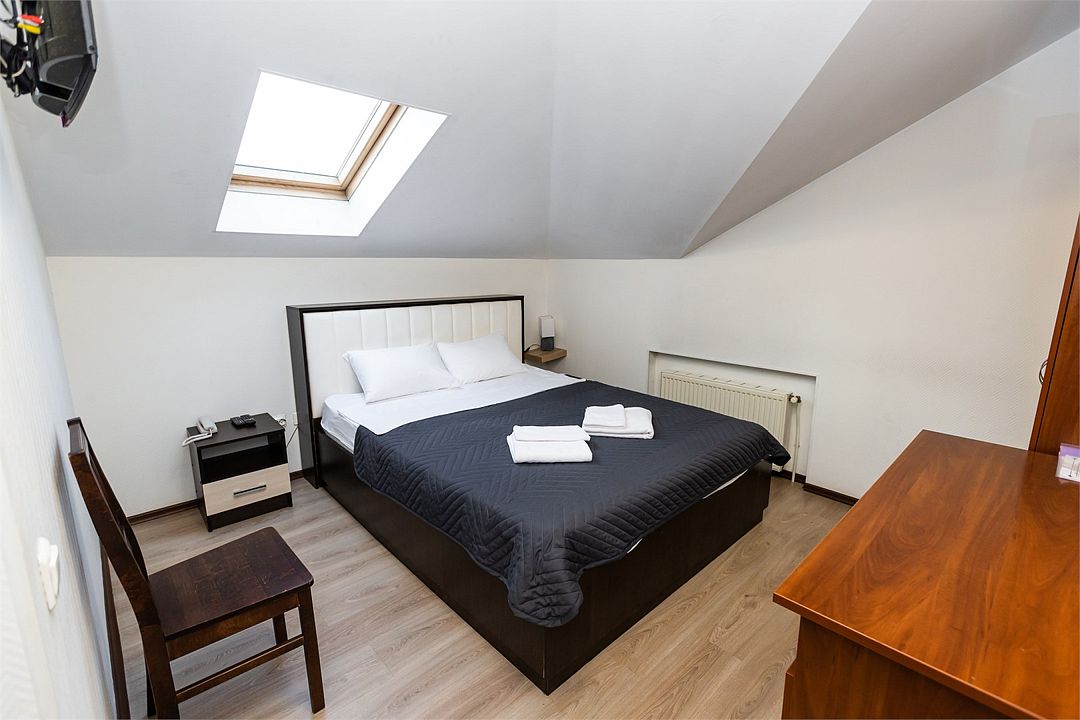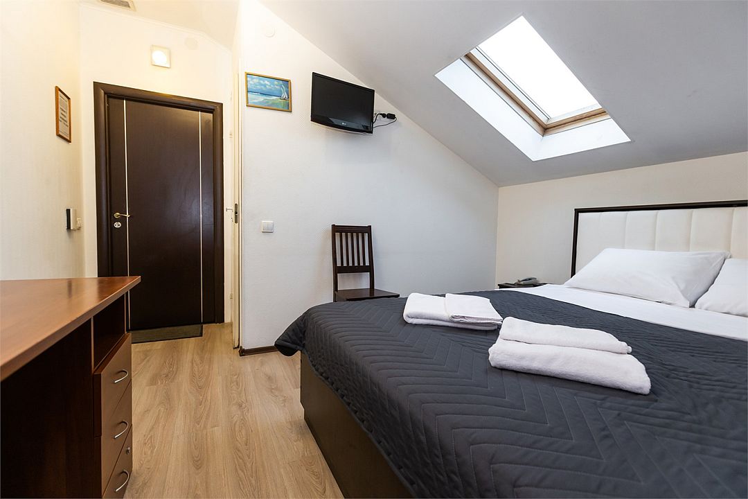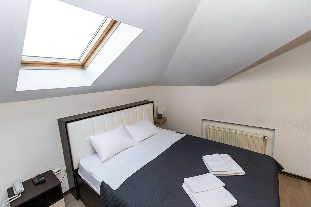 Номер оборудован всем необходимым, чтобы обеспечить вам отличный уровень комфорта: для отдыха —двуспальная мягкая кровать, а для продуктивной работы есть эргономичный стол. Отличный вариант для одиночных путешествий или командировок. Все номера данной категории оборудованы мансардными окнами.Номера данной категории имеют индивидуальный дизайн и площадь.Номера могут отличаться друг от друга.Услуги и удобства