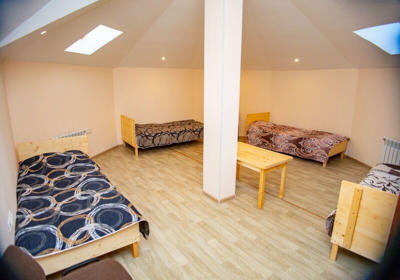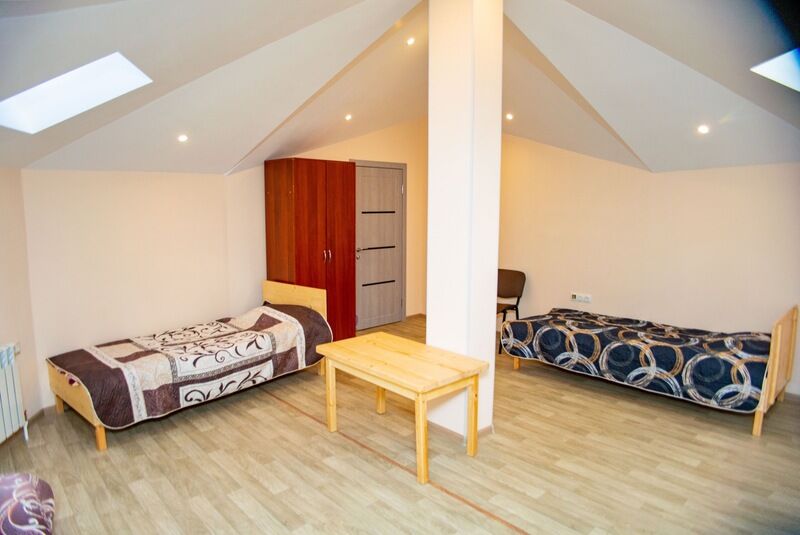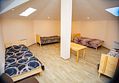 Номера с мансардными окнами и застеленными кроватями. В каждый номер можно добавить ещё одно спальное место.