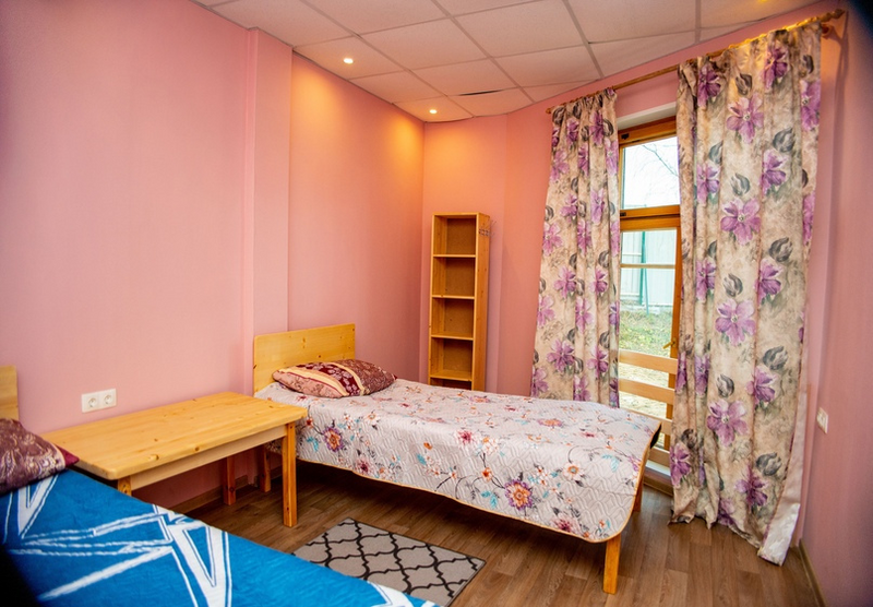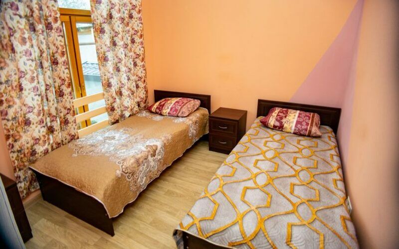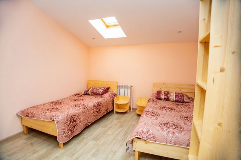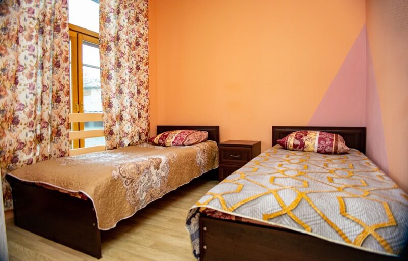 Номера с двумя односпальными кроватями (90 × 200 см), пеналом с полками для вещей и прикроватными тумбами. Постельное бельё включено.