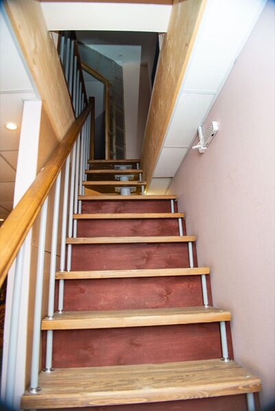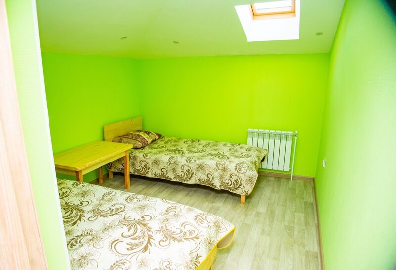 Номер на четыре односпальные кровати (90 × 200 см), расположенный на втором этаже. Удобства