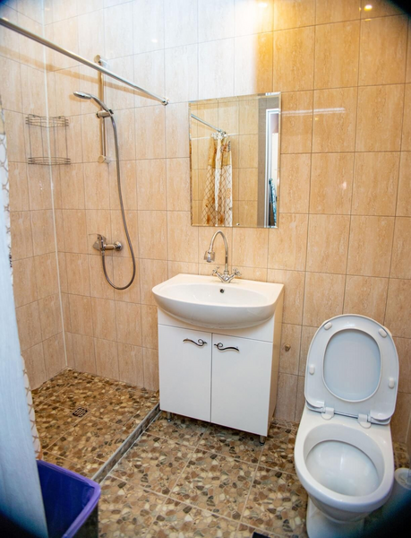 В номере двуспальная и односпальная кровати, собственная ванная комната.