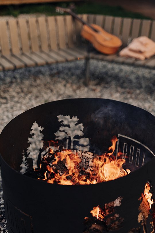 У мангальной зоны вы найдете решетку и шампура, дрова, розжиг – все это входит в стоимость проживания.