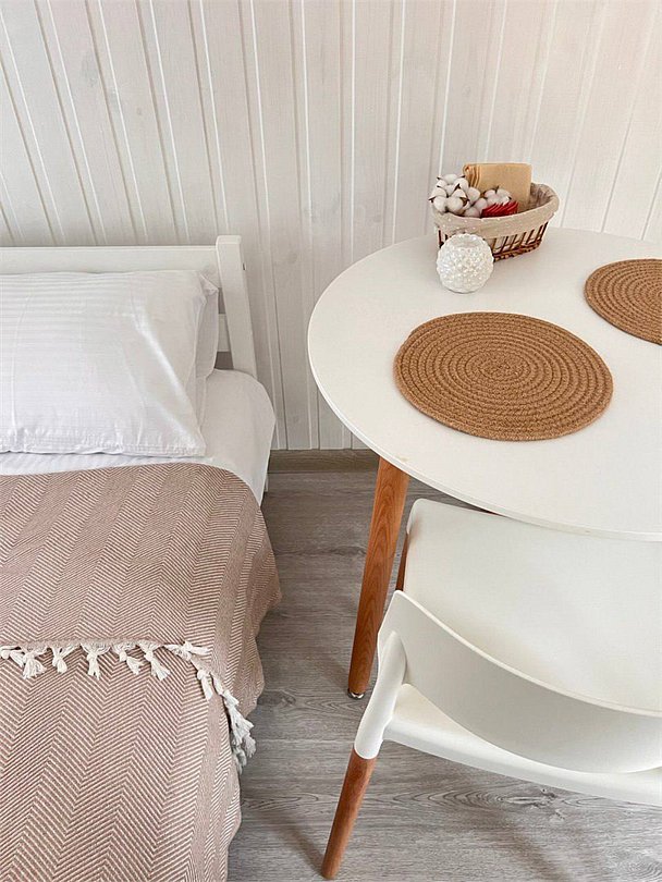 Вам предлагается организованный и комфортный отдых в уютном доме, на лоне дикой природы с элементами «роскоши» отеля: двуспальная мягкая кровать, мебель, кухня со всей необходимой бытовой техникой, душ и туалет, кондиционер и тёплый пол, мангальная зона с садовой мебелью и великолепный вид из панорамного окна. Все детали дома продуманы с душой.