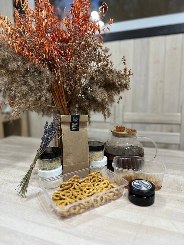 - подарок: 2 банных бокса с натуральными средствами для заботы о коже и угощениями (1 бокс рассчитан на 2х человек);