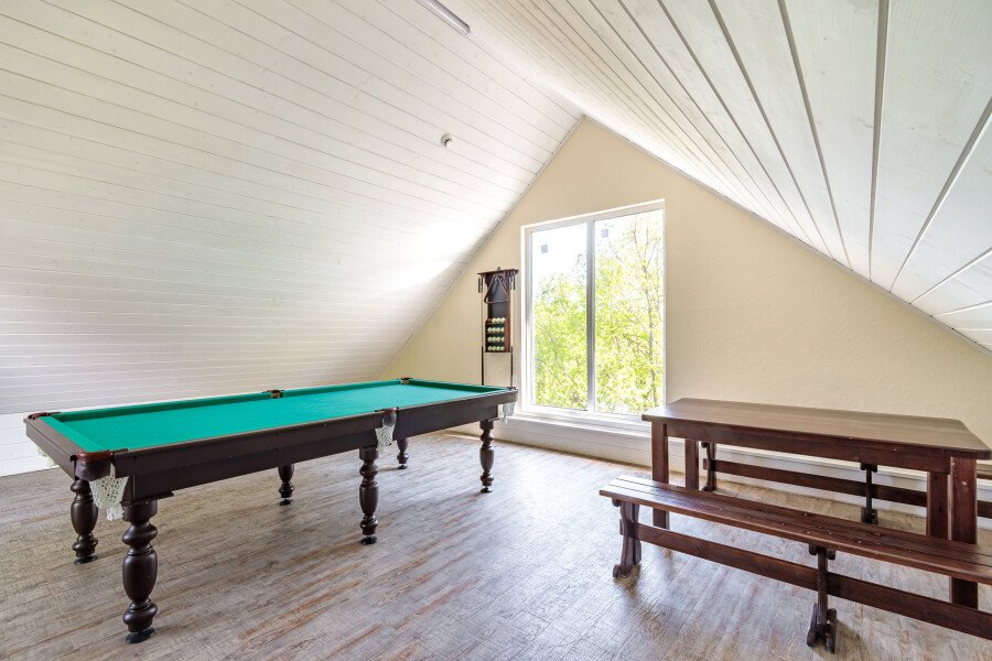 Проведите банкет на светлой и просторной веранде, а романтическую церемонию — на изысканном пирсе с видом на зеркальную гладь озера. Воздух, наполненный ароматом цветущего яблоневого сада, станет прекрасным дополнением к вашему торжеству. После празднества отдохните душой и телом в русской бане на дровах с освежающей купелью. Для любителей активного отдыха предусмотрен русский бильярд, а профессиональный мангал позволит приготовить вкуснейшие блюда на открытом огне.