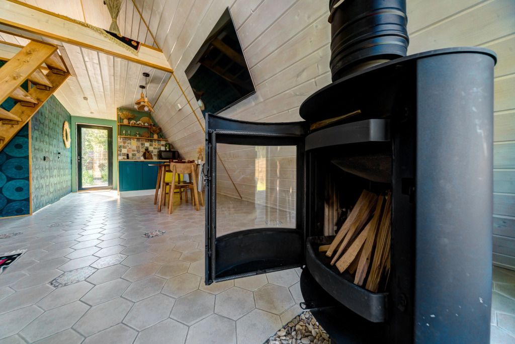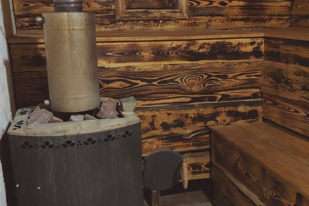 Парилка рассчитана на посещение до 4 человек. Банная печь оснащена специальным отделением для подачи воды, в том числе с аромамаслами для ароматного парения.