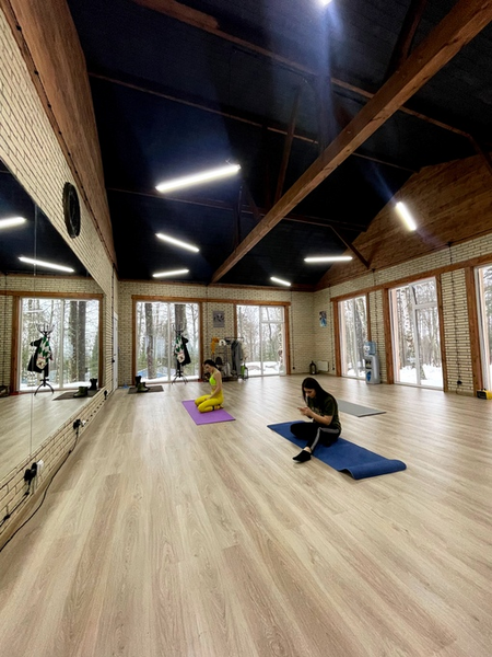 На территории базы отдыха есть пространство для занятий фитнесом и йогой!