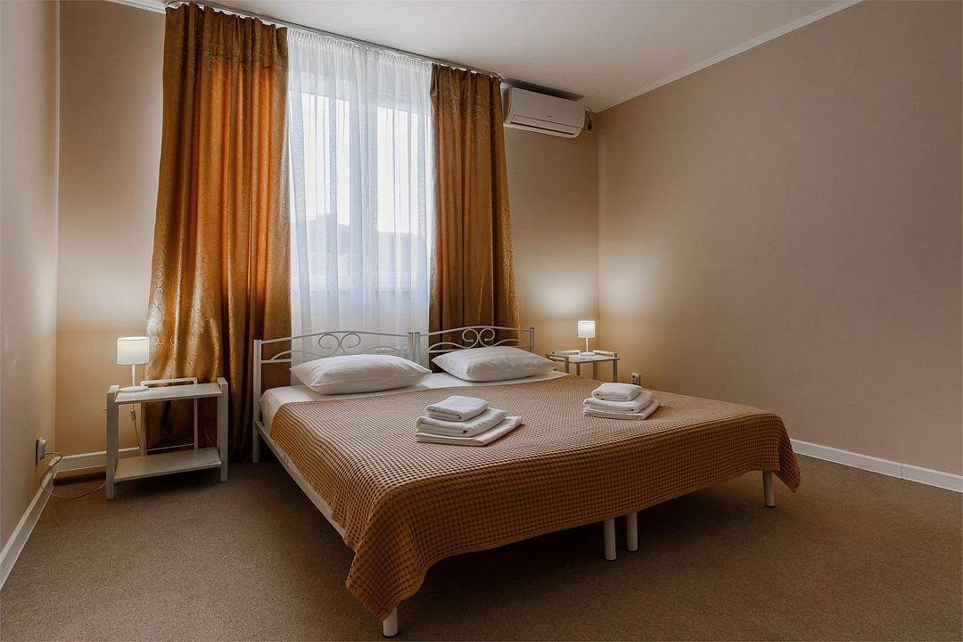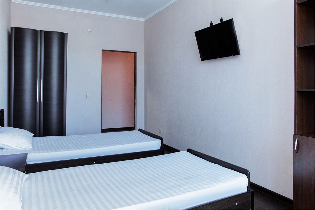 Wi-Fi, кондиционер, ванная комната, биде, банные полотенца, тапочки, гигиенические средства, две полутораспальные кровати, тумбы, стулья, шкаф для одежды, вешалки, журнальный столик, зеркало, чайный набор, обслуживание номеров, унитаз, раковина, ковровое покрытие, отопление, душ, стаканы, туалетные средства, туалет, телевизор с плоским экраном, москитная сетка, можно с питомцамиВ гостиничном номере